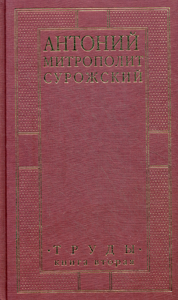 Вторая книга «Трудов» митрополита Сурожского Антония (1914- 2003), выходящая ныне третьим изданием, глубоко вводит читателя в жизнь по Евангелию и в жизнь Церкви в современном мире. Книга составлена преимущественно из выступлений и бесед Владыки Антония, никогда не появлявшихся в печати или увидевших свет в давно ставших недоступными читателю изданиях. Она предназначена самому широкому кругу читателей. Хотя содержательно вторая книга расширяет и углубляет многие темы, поднятые в первой, каждая из книг вполне самостоятельна. Книга содержит обширную библиографию трудов митрополита Антония, комментарии, тематический и именной указатели и множество фотографий. Книга предназначена самому широкому кругу читателей: не только православным, но каждому, кто хочет и готов услышать, что говорит Православная Церковь современному человеку.| Издательство | Практика |