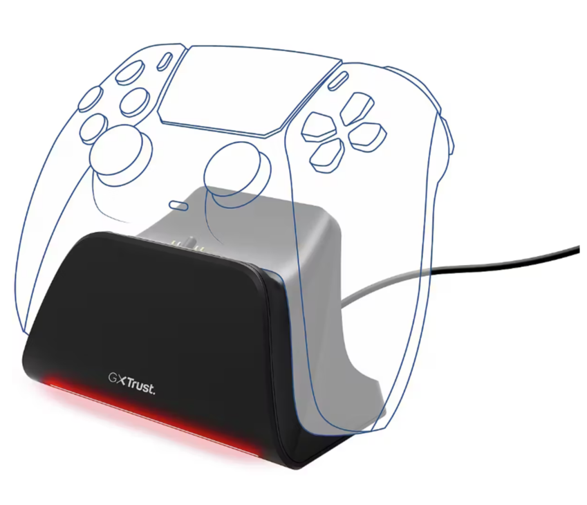 Trust GXT 255 быстрая зарядная станция для двух контроллеров PlayStation 5 DualSense™. Обеспечивает полную зарядку менее чем за 3 часа. Оснащена многоцветным светодиодным индикатором зарядки и нескользящей подставкой для устойчивости.
