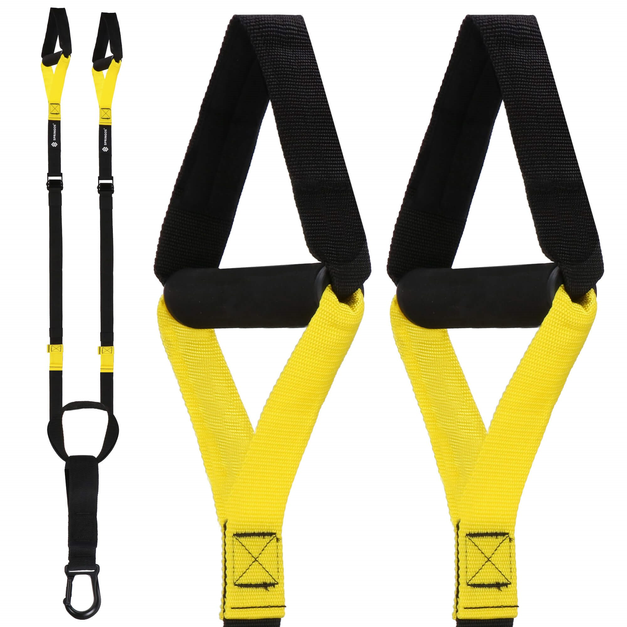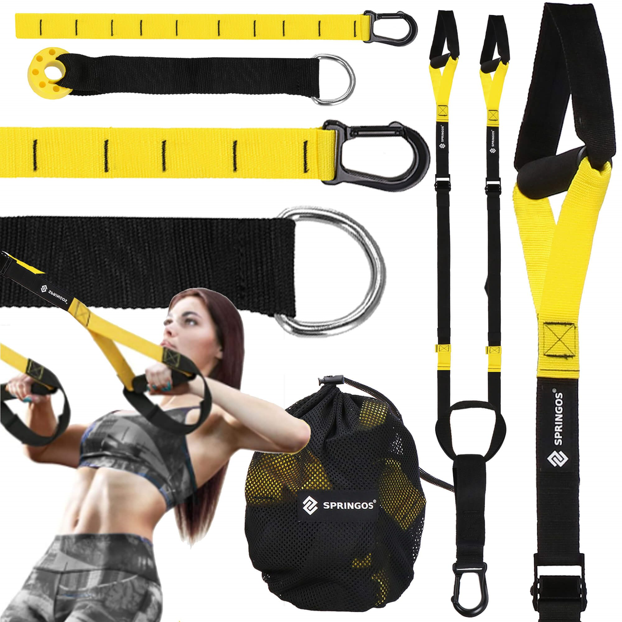 Бренд: Спрингос® Регулировка рычага: 110-165 см. Лента с карабином: 95 см. Ширина ручки: 13 см. Диаметр ручки: 3,5 см. Максимальная нагрузка: 250 кг ВКЛЮЧЕНО: Лента с ручками Лента с карабином Сеть