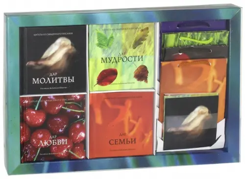 Набор из 4-х миниатюрных книг с цитатами из Библии в современном русском переводе РБО на темы семьи, мудрости, любви и молитвы: