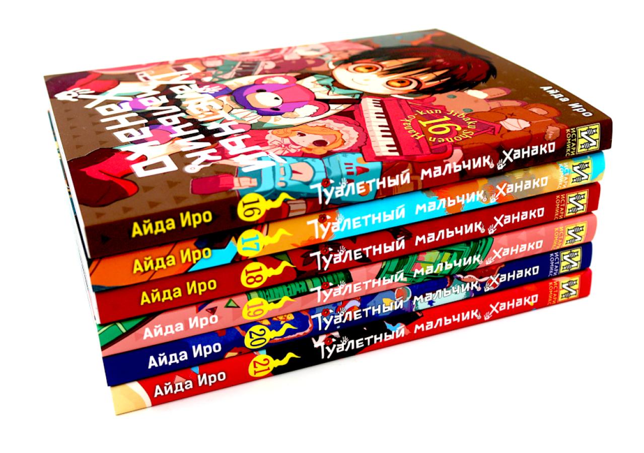 Комплект из 21 томов манги «Туалетный мальчик Ханако» (AidaIro). «Туалетный мальчик Ханако» - популярная манга в жанре мистического сэйнэна с элементами хоррора и школьной повседневности. В этих томах сюжет выходит на новый виток: раскрываются давние тайны сверхъестественного мира академии Камомэ, а главные герои сталкиваются с последствиями своих решений и новыми угрозами. В академии Камомэ ходит легенда о Ханако - призраке из женского туалета третьего этажа, который исполняет желания. Юная Нэнэ Ясиро, мечтающая о романтике, находит Ханако и обнаруживает, что «туалетный мальчик» - на самом деле девушка. Вместе с Ко Минамото, экзорцистом-практикантом, они исследуют сверхъестественные феномены школы, балансируя между обыденной жизнью и опасными встречами с духами.| Издательство | ИД Истари Комикс |