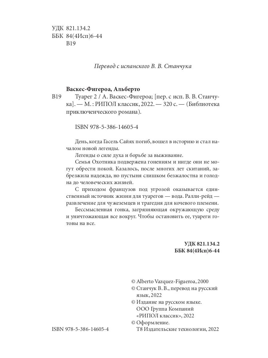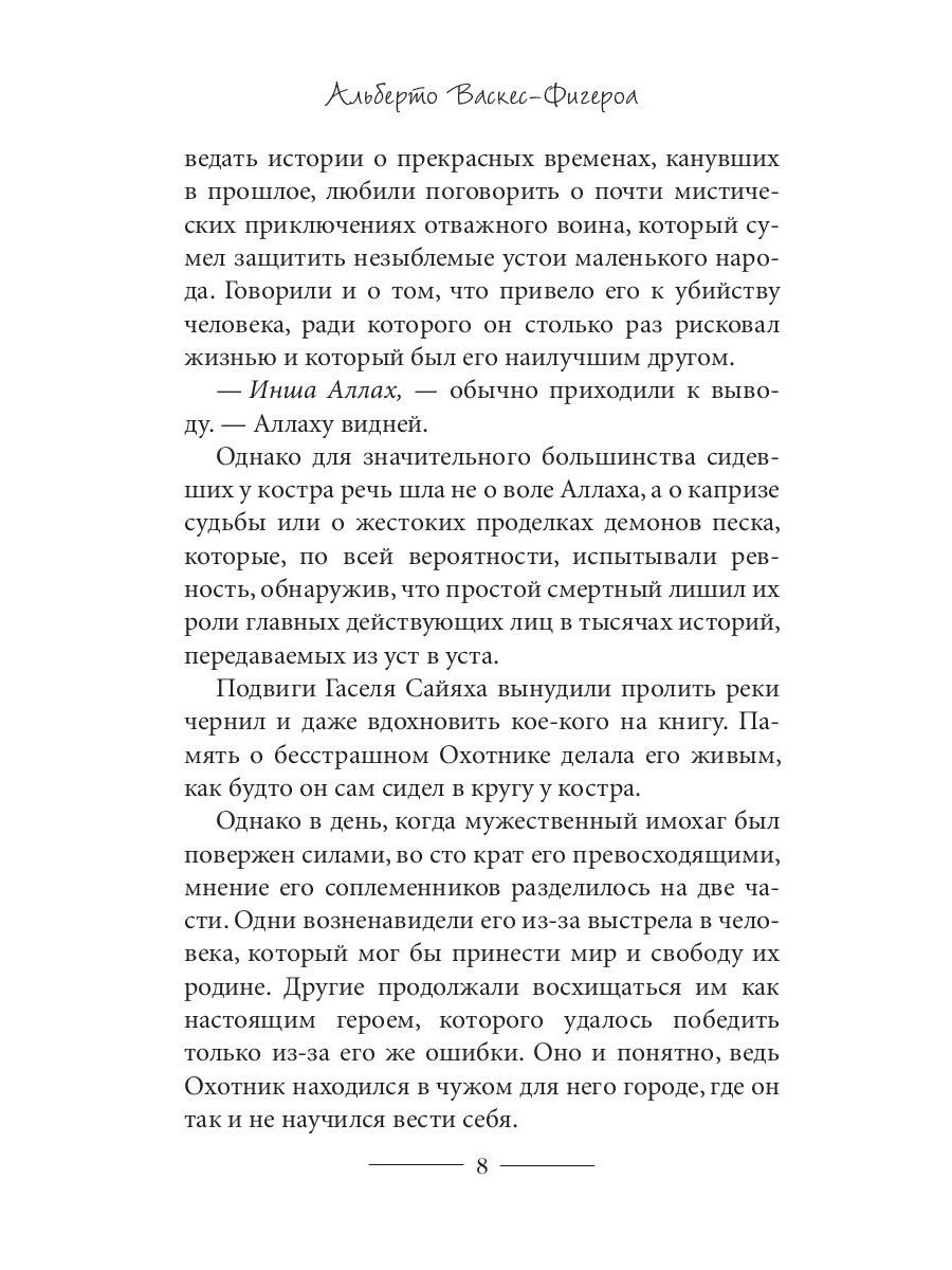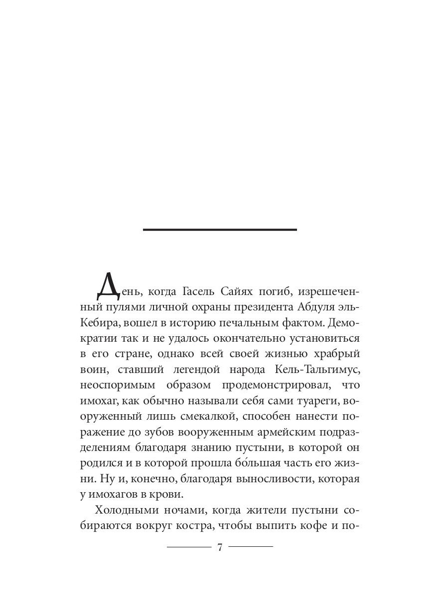 День, когда Гасель Сайях погиб, вошел в историю и стал началом новой легенды. Легенды о силе духа и борьбе за выживание. Семья Охотника подвержена гонениям и нигде они не могут обрести покой. Казалось, после многих лет скитаний, забрезжила надежда, но пустыня слишком безжалостна и голодна до человеческих жизней. С приходом французов под угрозой оказывается единственный источник жизни для туарегов - вода. Ралли-рейд - развлечение для чужеземцев и трагедия для кочевого племени. Бессмысленная гонка, загрязняющая окружающую среду и уничтожающая все вокруг. Чтобы остановить ее, туареги готовы на все.| Издательство | Рипол Классик |