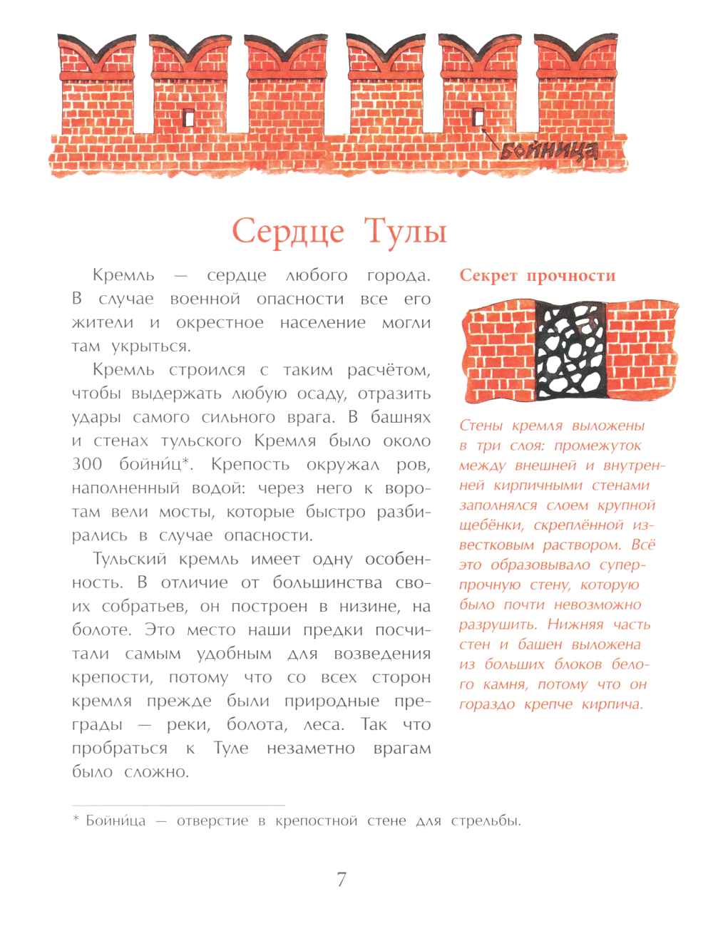 Тула, один из древнейших русских городов, славится на весь мир не только своими пряниками и самоварами. Это город умельцев-оружейников, чьё мастерство и трудолюбие не раз помогало нашей армии победить в жестоких боях. Знакомство с городом, его историей, улицами, музеями, путешествие по Тульскому кремлю, рассказы о замечательных людях, живших на этой земле, станут настоящим открытием для читателя.| Издательство | Настя и Никита |