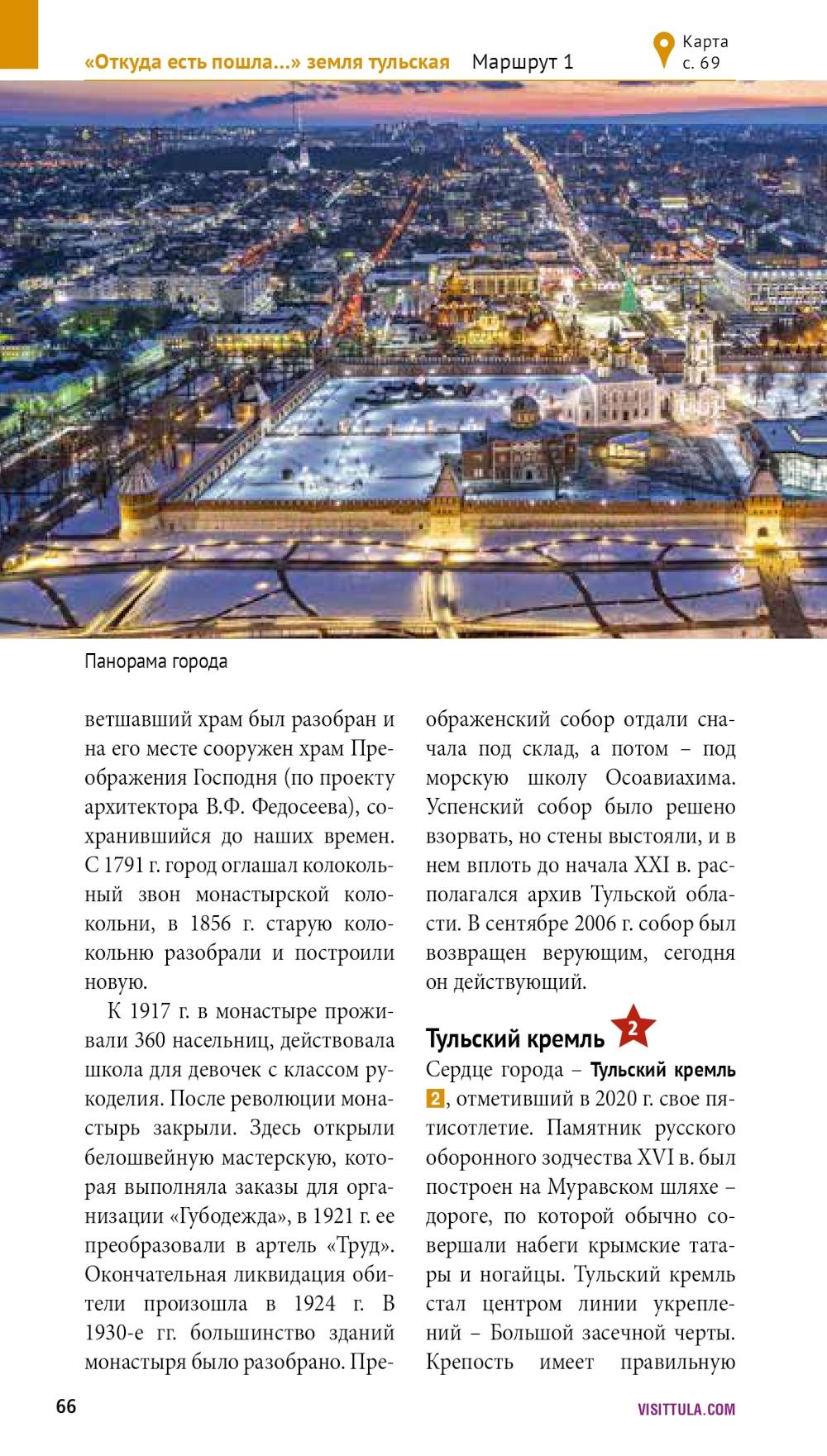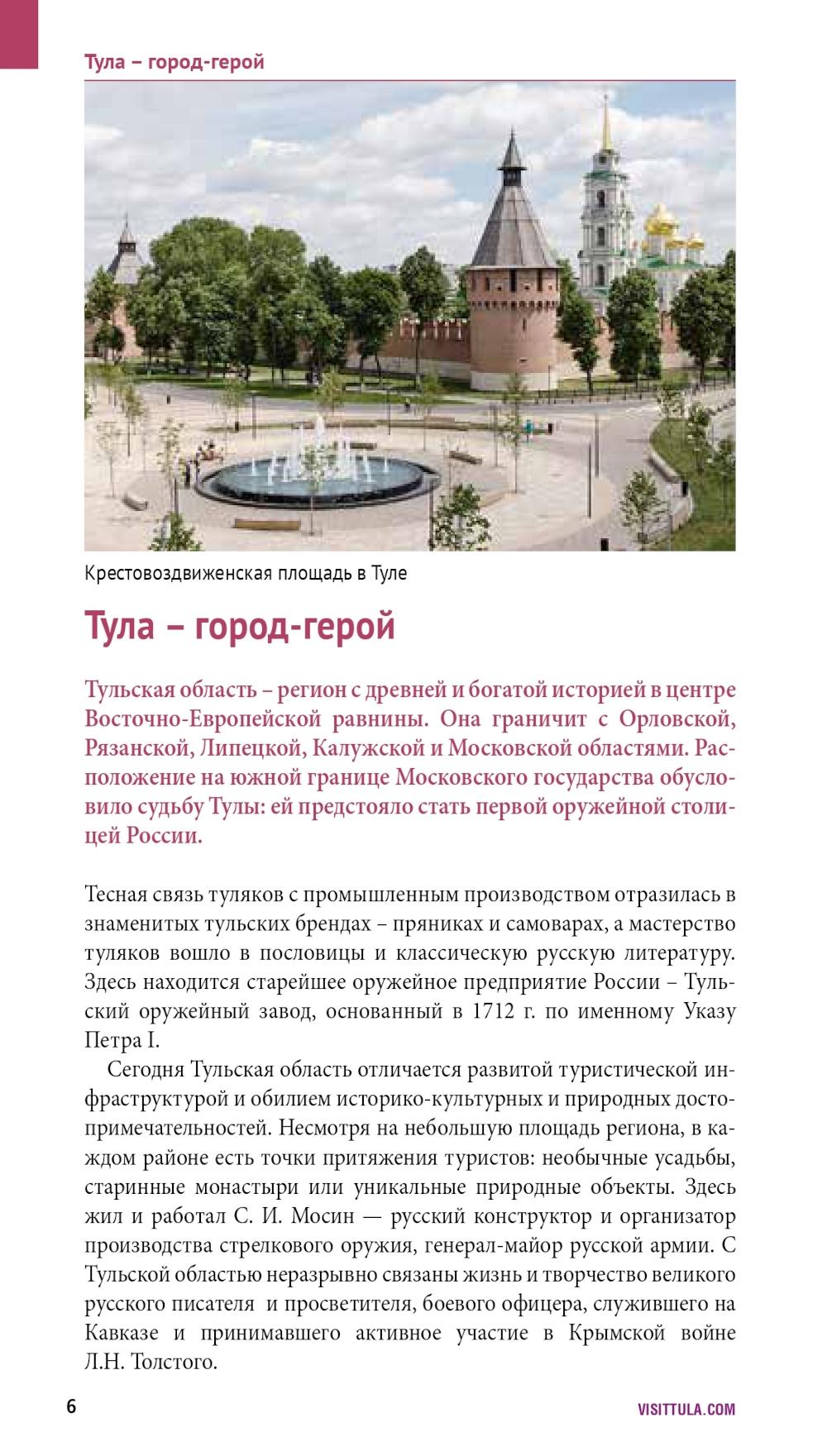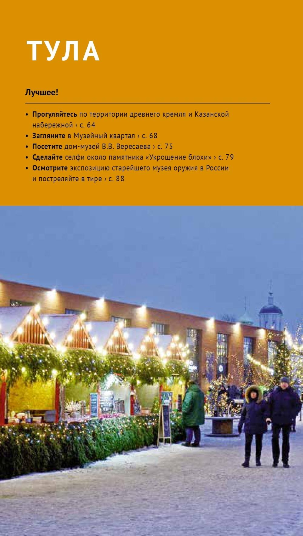 «Русский гид. Полиглот» вместе с историками Еленой Симоновой и Ольгой Секеновой предлагают отправиться в Тульскую область. «Хотите понять Россию - начните с Тулы», - говорят сами туляки, зазывая к себе туристов. И ведь не поспоришь: земля эта - настоящая сокровищница русской истории, культуры, традиций. Даже если не заезжать в столицу, в области хватит интересного на несколько выходных. Древние крепости и современные музеи, старинные усадьбы и креативные экоотели, истории знаменитых туляков и пейзажи берегов Оки и Красивой Мечи - и все это в относительной близости от Москвы.| Издательство | Аякс-Пресс |