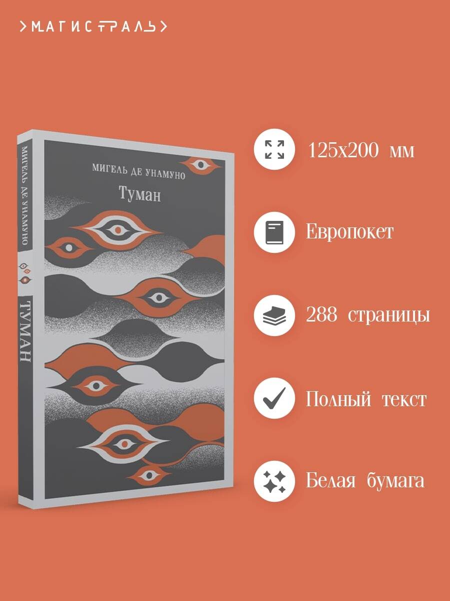 Мигель де Унамуно - испанский классик и философ. В противовес роману он изобрел жанр «нивола» (или «раман»), изменив литературные правила игры. Унамуно в «Тумане» делает читателя соавтором и позволяет выбрать один из двух вариантов концовки. Аугусто, герой рамана, подозревает, что он всего лишь плод фантазии автора, что его жизнь подчинена чужой воле. Свет глаз хорошенькой пианистки вызволяет героя из густого тумана обыденности, но вместе с тем приносит эту роковую мысль. Впрочем, поначалу Аугусто не обращает на нее особого внимания. Все его силы брошены на то, чтобы понравиться своенравной пианистке и отбить ее у жениха. Однако девушка начинает играть чувствами Аугусто. В отчаянье он решает свести счеты с жизнью, но сперва приезжает к своему создателю домой и узнает, что тот собирается его убить… Герой «Тумана» - это одновременно и «маленький Гамлет», и Дон Кихот. Помимо аллюзий на Шекспира и Сервантеса в тексте можно уловить отсылки на произведения Достоевского «Записки из подполья» и «Бесы». Унамуно играет не только со своим персонажем, но и с читателями. Он заставляет усомниться нас в своем существовании, намекая, что окружающий мир и все, что в нем происходит - это тоже чей-то раман. Иллюстрации на обложках коллекции «Магистраль. Сиеста» вдохновлены аутентичными испанскими и латиноамериканскими орнаментами и символами. Клапаны - продолжение обложки - можно использовать как закладки. Сюжет ниволы Унамуно может стать отличным материалом для аргументации в сочинении ЕГЭ и ОГЭ по русскому языку и литературе. Раман также будет необходим студентам филологического направления.| Издательство | ООО "Издательство "Эксмо" |