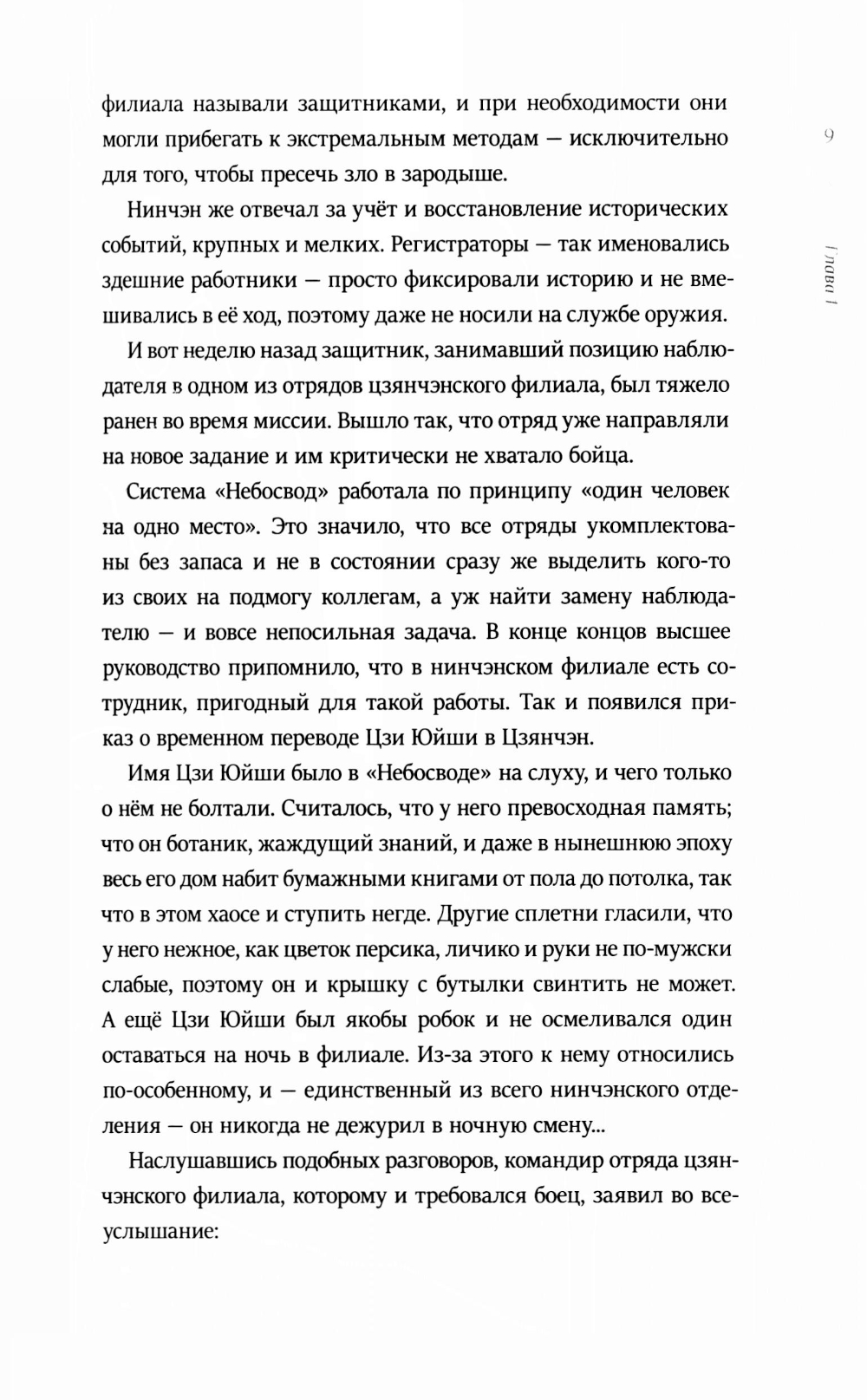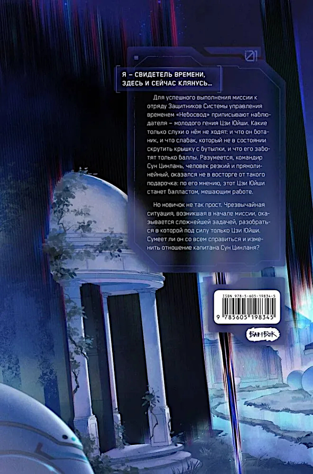 Для успешного выполнения миссии к отряду Защитников Системы управления временем «Небосвод» приписывают наблюдателя - молодого гения Цзи Юйши. Какие только слухи о нём не ходят: и что он ботаник, и что слабак, который не в состоянии скрутить крышку с бутылки, и что его заботят только баллы. Разумеется, командир Сун Цинлань, человек резкий и прямолинейный, оказался не в восторге от такого подарочка: по его мнению, этот Цзи Юйши станет балластом, мешающим работе. Но новичок не так прост. Чрезвычайная ситуация, возникшая в начале миссии, оказывается сложнейшей задачей, разобраться в которой под силу только Цзи Юйши. Сумеет ли он со всем справиться и изменить отношение капитана Сун Цинланя?| Издательство | КомФест/Три девять |