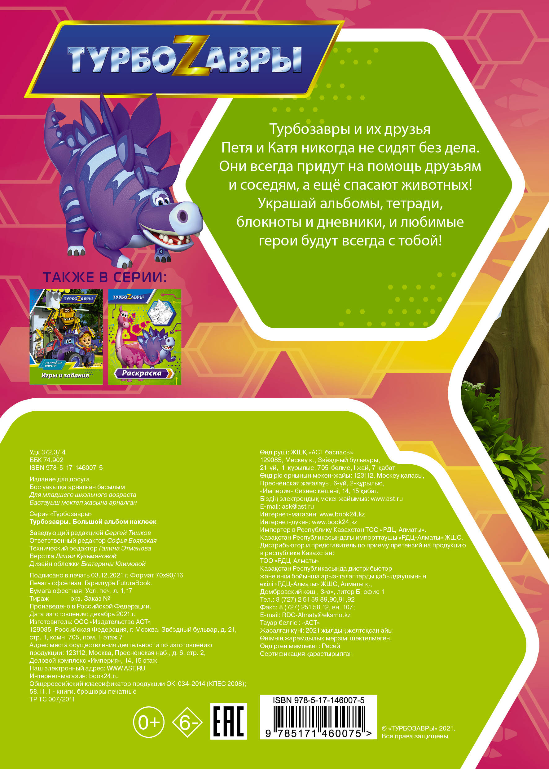 Турбозавры и их друзья Петя и Катя никогда не сидят без дела. Они всегда придут на помощь друзьям и соседям, а ещё спасают животных! Украшай альбомы, тетради, блокноты и дневники, и любимые герои будут всегда с тобой!| Издательство | ИЗДАТЕЛЬСТВО "АСТ" |