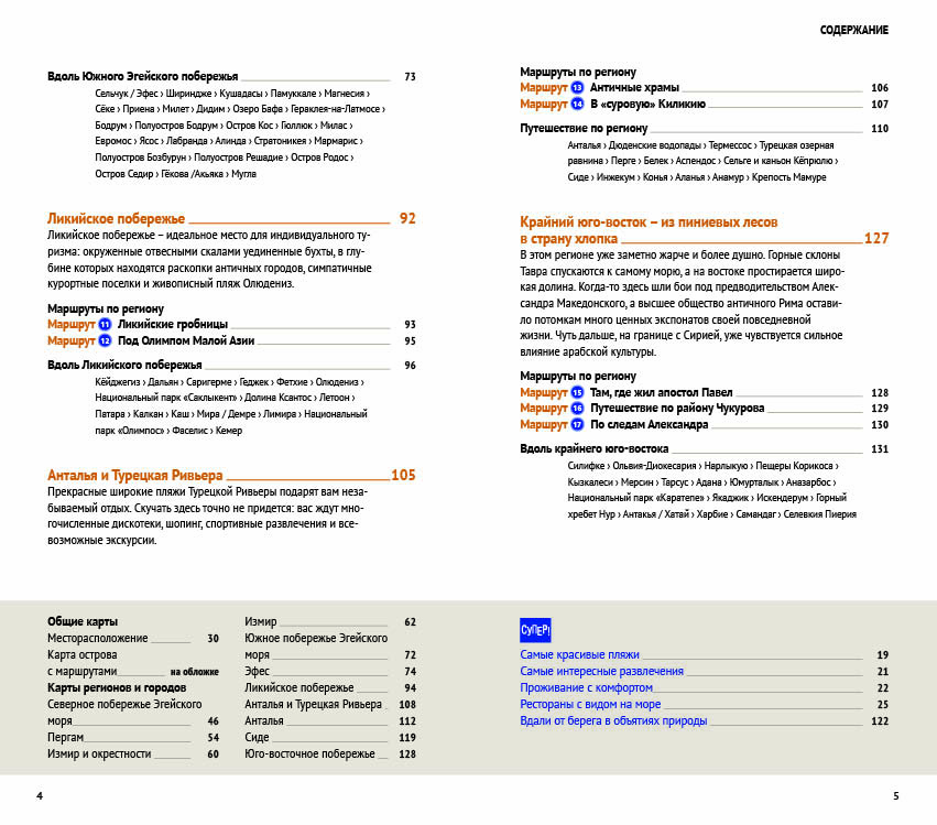 Путеводитель содержит много актуальной информации о популярной среди наших соотечественников зоне отдыха в Турции. Для удобства пользователей путеводитель дополнен большой подробной картой средиземноморского побережья Турции (в накладном кармане на обложке). Автором разработано 17 маршрутов, для каждого из которых отрисованы специальные карты.
