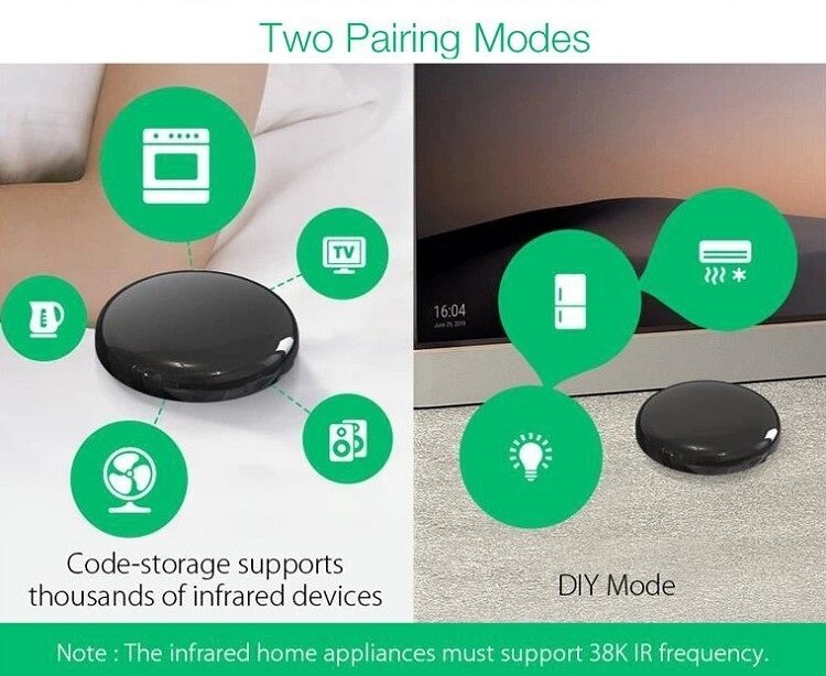 Умный ИК-пульт дистанционного управления TUYA, Wi-Fi - это универсальное инфракрасное устройство дистанционного управления, которое позволяет превратить ваши традиционные бытовые приборы (например, телевизоры, кондиционеры, DVD-плееры) в умные устройства, которыми можно управлять со смартфона или с помощью голосовых команд. Он идеально подходит для автоматизации умного дома, уменьшая необходимость в нескольких пультах дистанционного управления.