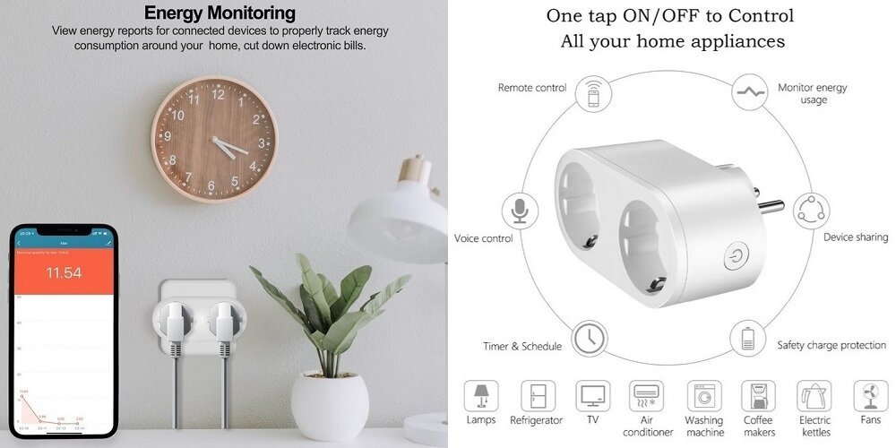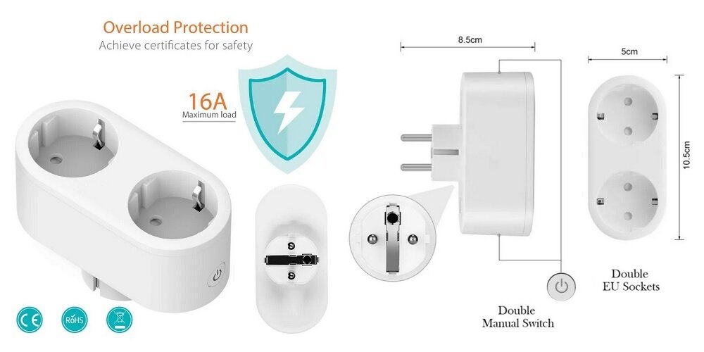 Умная Wi-Fi розетка TUYA, двойная, тип EU - это инновационное устройство для умного дома, которое позволяет удаленно управлять и автоматизировать двумя электрическими приборами с помощью смартфона и Wi-Fi соединения. Она идеально подходит для тех, кто хочет сделать свой дом умнее и энергоэффективнее.