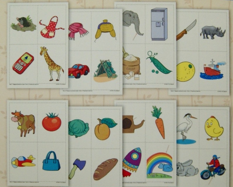- восемь листов А4 на картоне (с разрезными карточками).