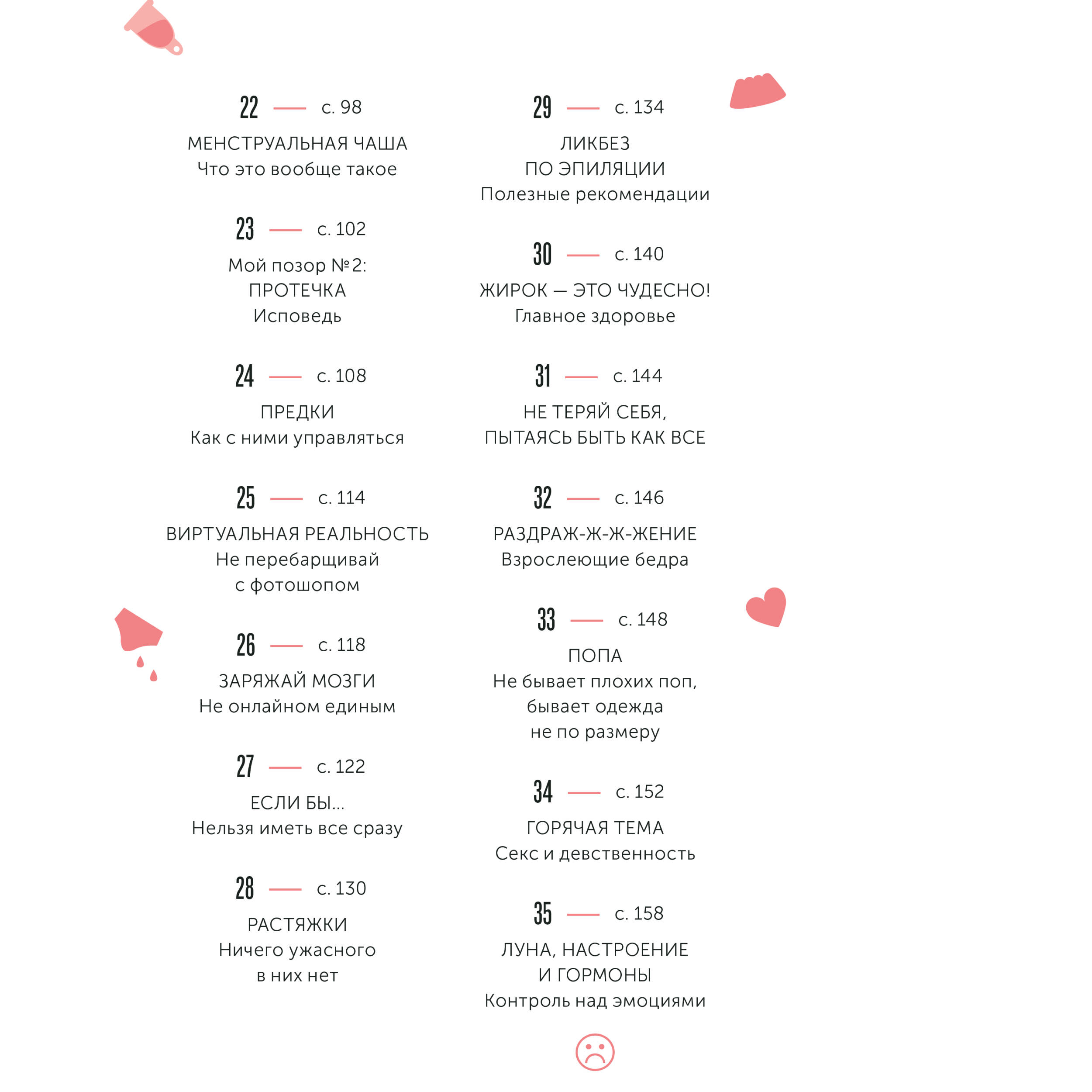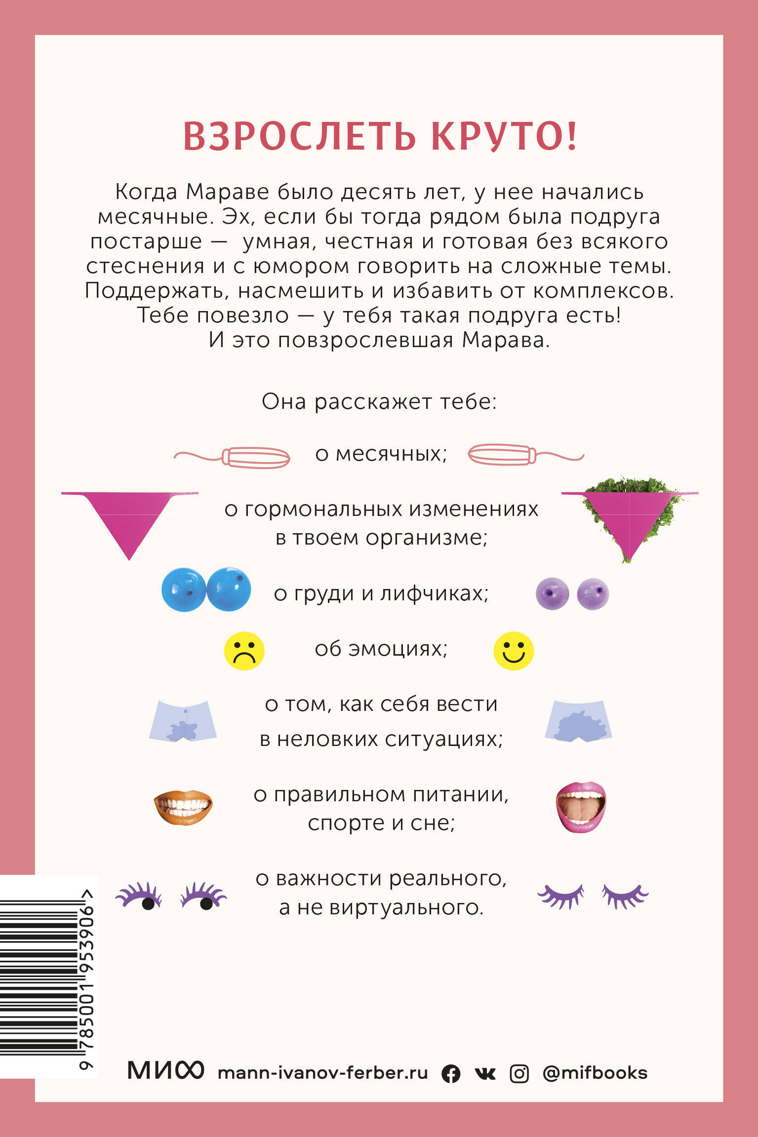 Книга об изменениях тела, которая поможет девочкам обрести уверенность в себе. Автор в формате коротких ироничных эссе дает полезные советы на темы, связанные с физиологией, которые не принято открыто обсуждать в обществе и семье.| Издательство | Манн, Иванов и Фербер |