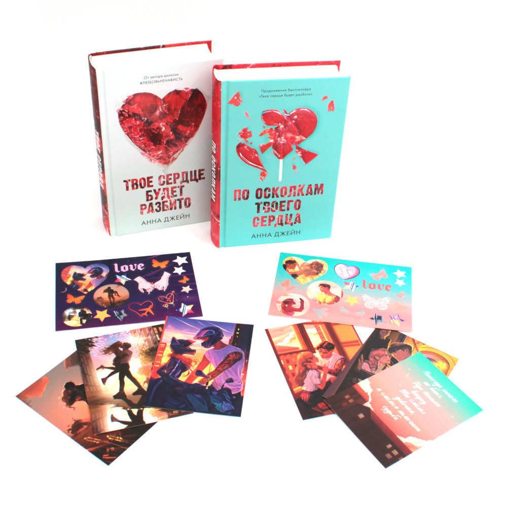 Комплект из 2 книг. Твое сердце будет разбито с мерчом Что может быть лучше хорошей книги? Только хорошая книга с тематическим мерчом! К роману приложены открытки и красочный стикерпак. Мерч создан по потрясающим артам Карины Яшагиной к подарочной дилогии Анны Джейн «Твое сердце будет разбито» и «По осколкам твоего сердца». Каждая открытка сделана из плотного картона, оборот открыток - максимально облегченный, чтобы вы могли написать на них все, что захотите. При заказе вы получите: • роман «Твое сердце будет разбито» • один стикерпак формата А5 • три открытки с артами из романа, формат - 90х120 мм Мерч trendbooks - идеальный подарок для любого книголюба! Дарите яркий книжный мерч друзьям или собирайте собственную коллекцию и украшайте им пространство вокруг. По осколкам твоего сердца с мерчом Что может быть лучше хорошей книги? Только хорошая книга с тематическим мерчом! К роману приложены открытки и красочный стикерпак. Мерч создан по потрясающим артам Карины Яшагиной к подарочной дилогии Анны Джейн «Твое сердце будет разбито» и «По осколкам твоего сердца». Каждая открытка сделана из плотного картона, оборот открыток - максимально облегченный, чтобы вы могли написать на них все, что захотите. При заказе вы получите: • роман «По осколкам твоего сердца» • один стикерпак формата А5 • три открытки с артами и цитатой из романа, формат - 90х120 мм Мерч trendbooks - идеальный подарок для любого книголюба! Дарите яркий книжный мерч друзьям или собирайте собственную коллекцию и украшайте им пространство вокруг.| Издательство | Клевер-Медиа-Групп |