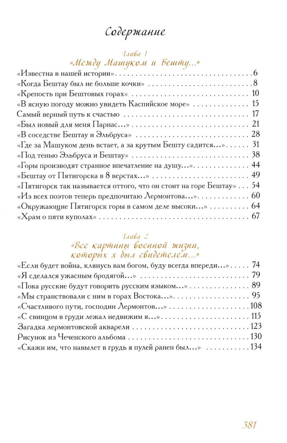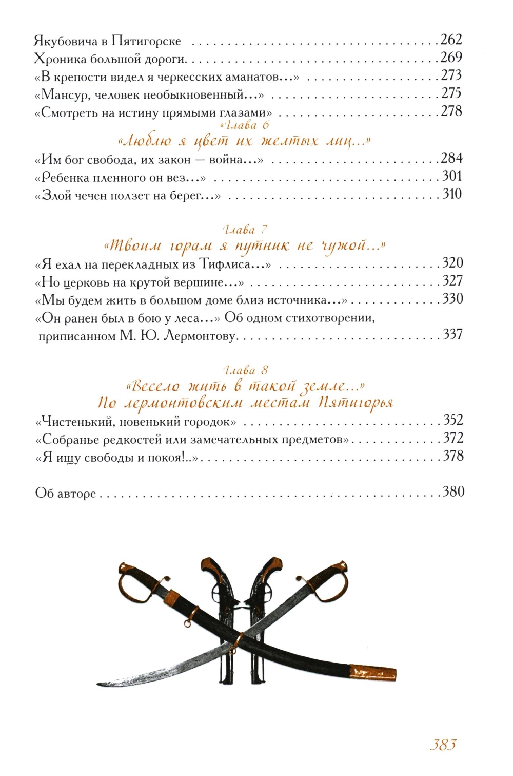 Книга посвящена пребыванию М. Ю. Лермонтова на Кавказе и творческой истории ряда его кавказских произведений. В ней нашли отражение: история лермонтовского Пятигорья; участие поэта в событиях Кавказской войны; его знакомство с А. П. Ермоловым и замысел романа о нём; горцы - герои произведений Лермонтова; история памятных лермонтовских мест Кавказских Минеральных Вод; пролитие света на отдельные, важные для Лермонтова, исторические события. Повествование построено на документальной основе и ведётся в широком литературном, историческом и этнографическом контексте. На страницах книги нашли отражение многие забытые или малоизвестные страницы кавказской старины, а читателя ждёт встреча с полководцами, друзьями и современниками поэта. Для широкого круга читателей.| Издательство | Изд.СНЕГ |