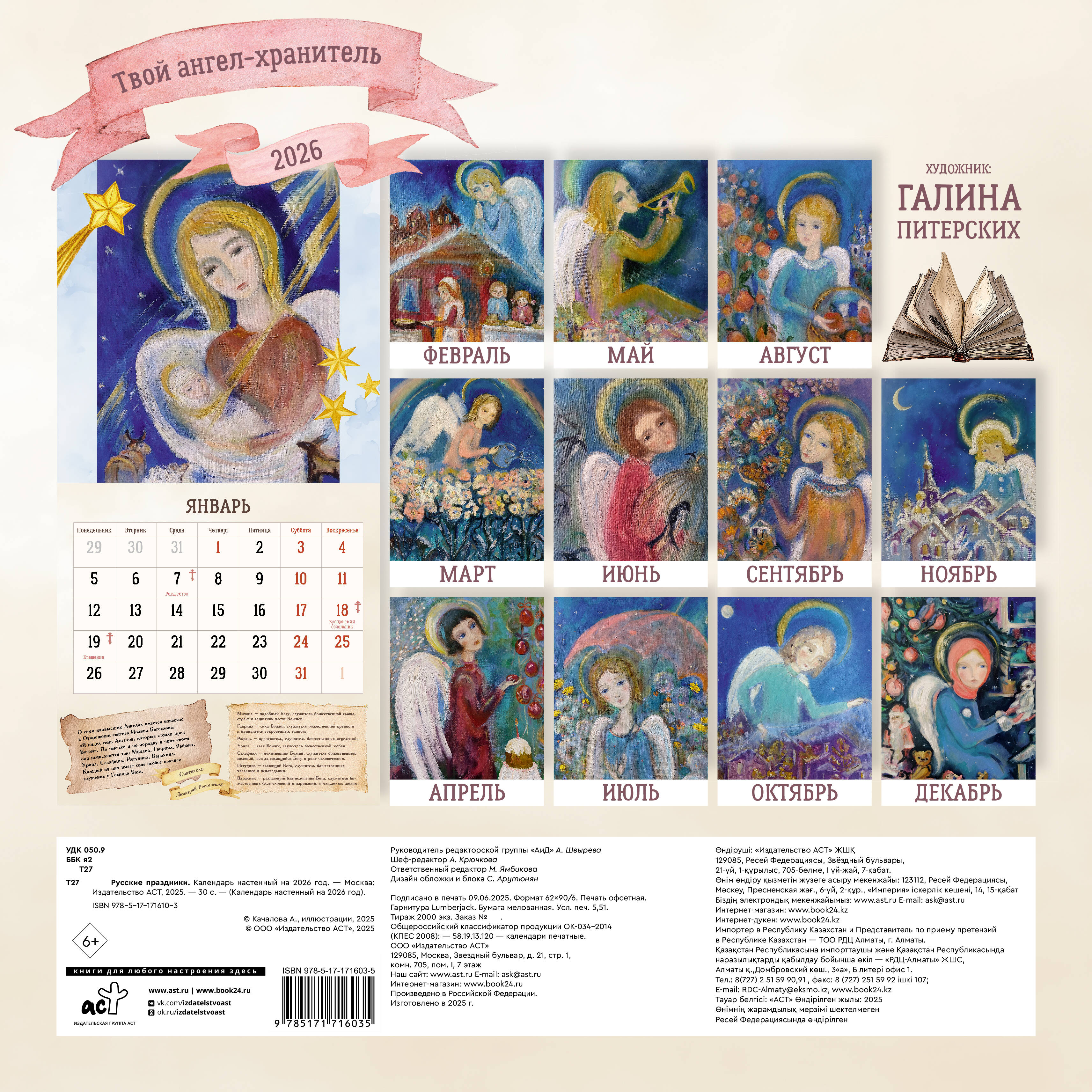 Настенный перекидной календарь на 2026 год с иллюстрациями художницы Галины Питерских станет замечательным подарком для любителей современной живописи и не только. В календарном блоке отмечены все самые значимые православные праздники. ПРИЯТНЫЙ БОНУС: внутри карманные календарики на 2026-2027 год, которые можно подарить друзьям и близким.| Издательство | Издательство "АСТ" |