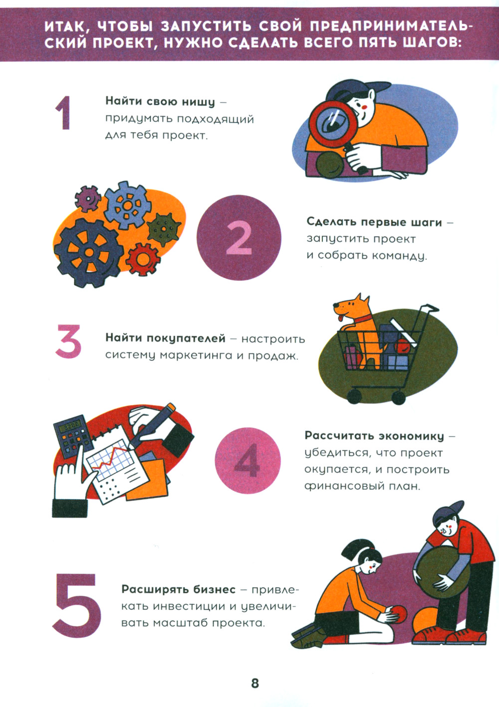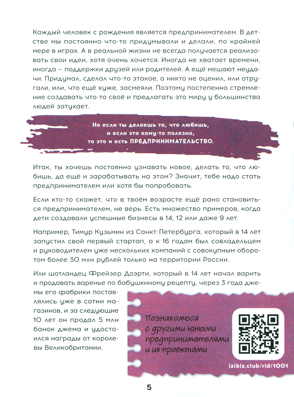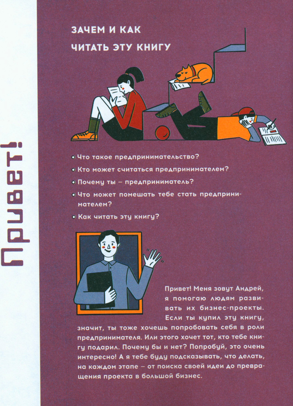 Автор книги Андрусов Андрей предпринимательством со школьниками занимается с 2014 года. Андрей готовил команды для участия в международном конкурсе школьных предпринимательских проектов SAGE, и в 2015 г. его команда получила 2 золотые медали на Кубке мира SAGE в Сеуле. Книга для начинающих предпринимателей 12-20 лет. Это путеводитель с понятным обьяснением каждого шага, который нужно сделать для запуска и развития предпринимательского проекта: поиск и выбор ниши, разработка продукта и запуск проекта, маркетинг и продажи, расчёт экономики и привлечение финансирования. Каждая тема сопровождается примерами,формами для заполнения, вопросами для самопроверки и ссылками на ресурсы, где можно найти более глубокое изложение тем.| Издательство | Альпина Паблишер |