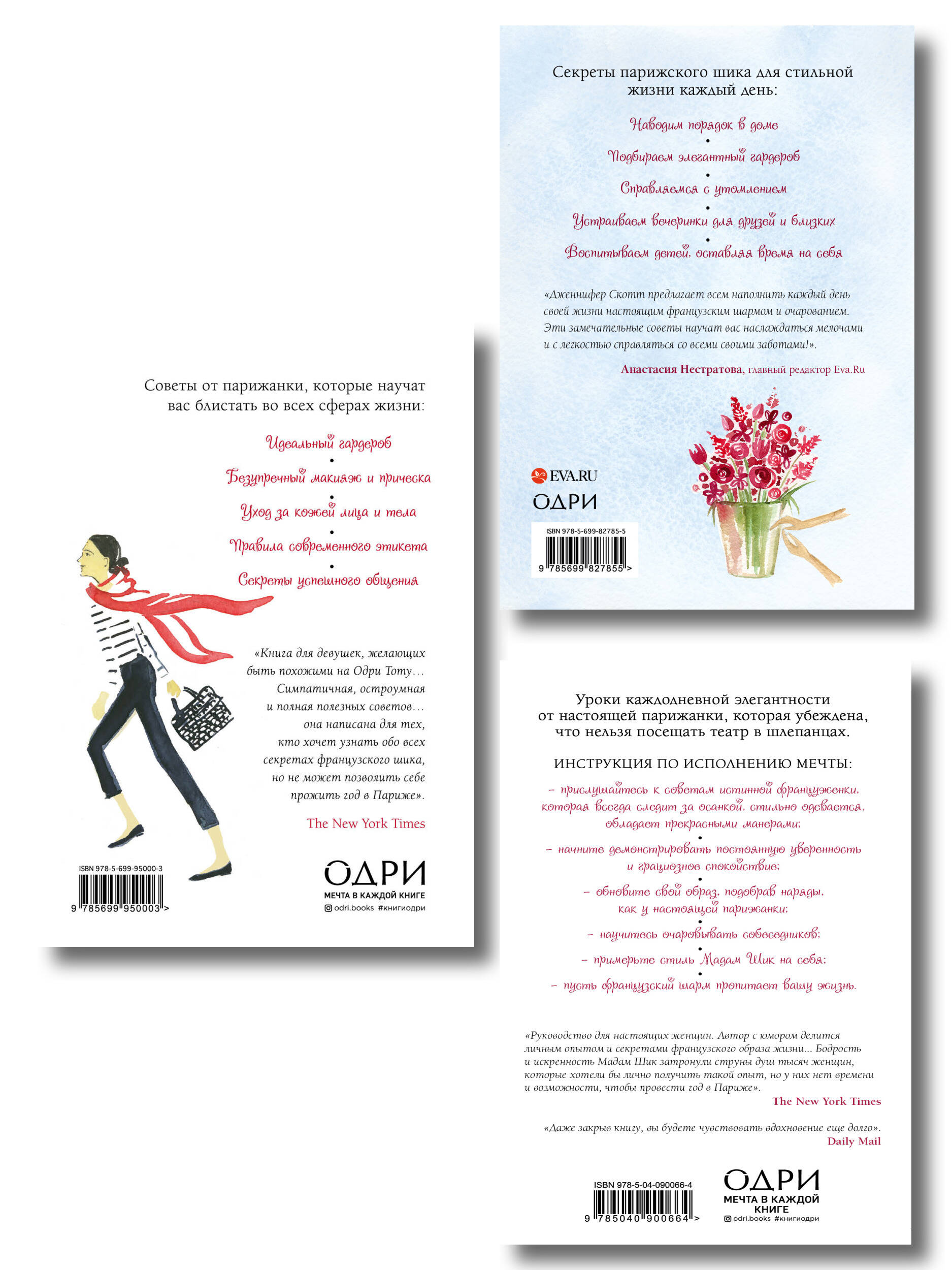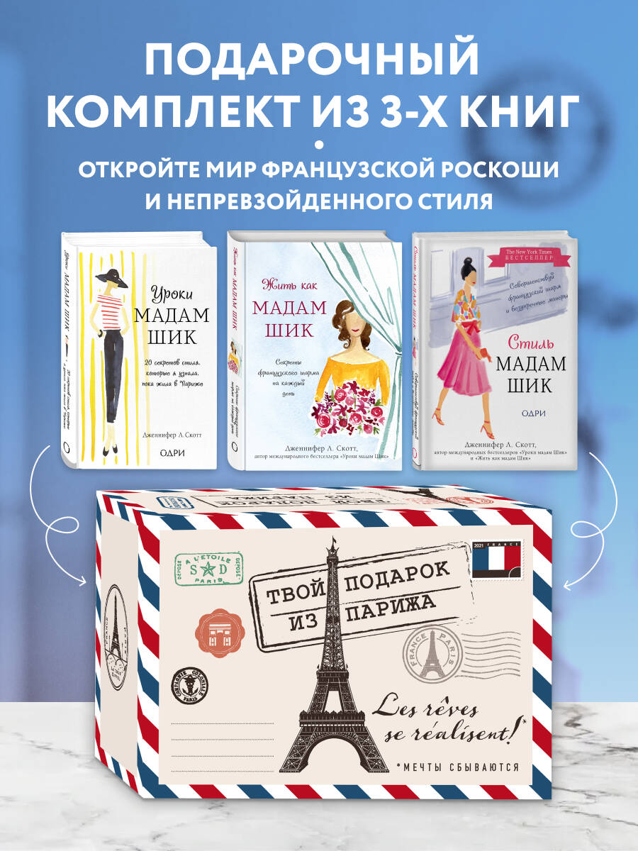 Если вы не едете во Францию, то Франция едет к вам! Скорее откройте посылку и отправьтесь в мир французской роскоши и променада, милых бесед с подругами на верандах парижских кафе, любви и непревзойденного стиля. «Уроки мадам Шик. 20 секретов стиля, которые я узнала, пока жила в Париже» Узнайте секреты французского шарма и 20 главных правил: от ухода за волосами до правильно подобранного гардероба, которые помогут ощутить себя парижанкой в считаные дни. «Жить как мадам Шик. Секреты французского шарма на каждый день» Сделайте роскошными любые мелочи и заботы, которые вас окружают, познав силу счастливой, стильной и приятной домашней жизни, вне зависимости от того, насколько перегружено ваше расписание или ограничен бюджет. «Стиль Мадам Шик. Совершенствуй французский шарм и безупречные манеры» Научитесь очаровывать собеседников, демонстрируя навыки элегантной хозяйки, которая умеет принимать гостей и устраивать ужины в лучших традициях французской богемы. Ваше окружение это оценит.| Издательство | ООО "Издательство "Эксмо" |