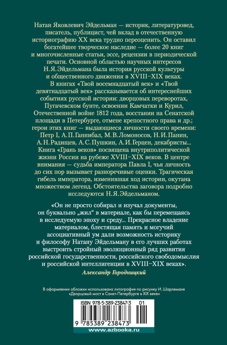 Аннотация: Твой XVIII век. Твой XIX век. Грань веков