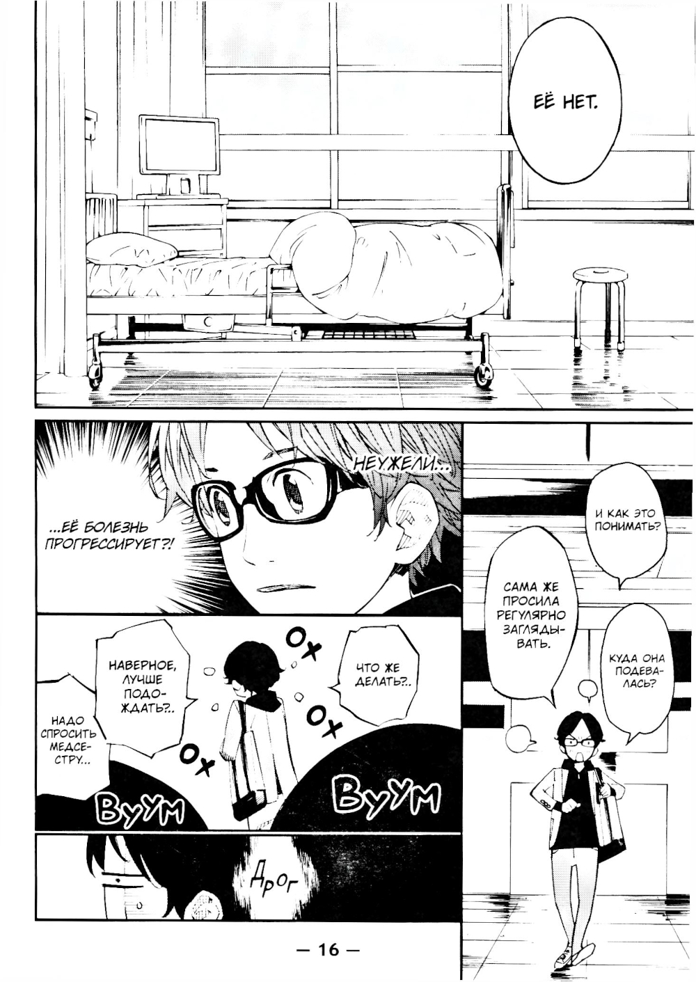 Совместным выступлением Косэй и Наги сумели донести свои чувства до близких. Просьба же юноши к Каори выступить с ним ещё раз зажигает в сердце девушки крошечный огонёк. Теперь им нужно сделать шаг вперёд: Косэю - пройти отборочные, Каори - реабилитацию. Тем временем осень постепенно сменяется зимой...| Издательство | ИД Истари Комикс |