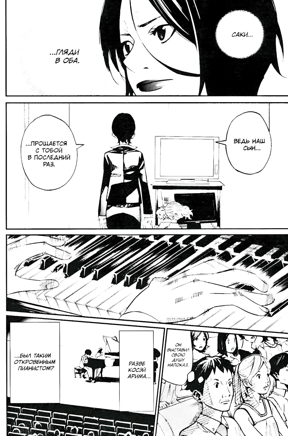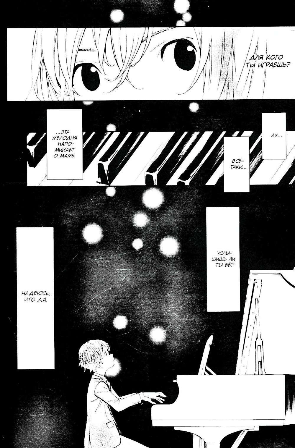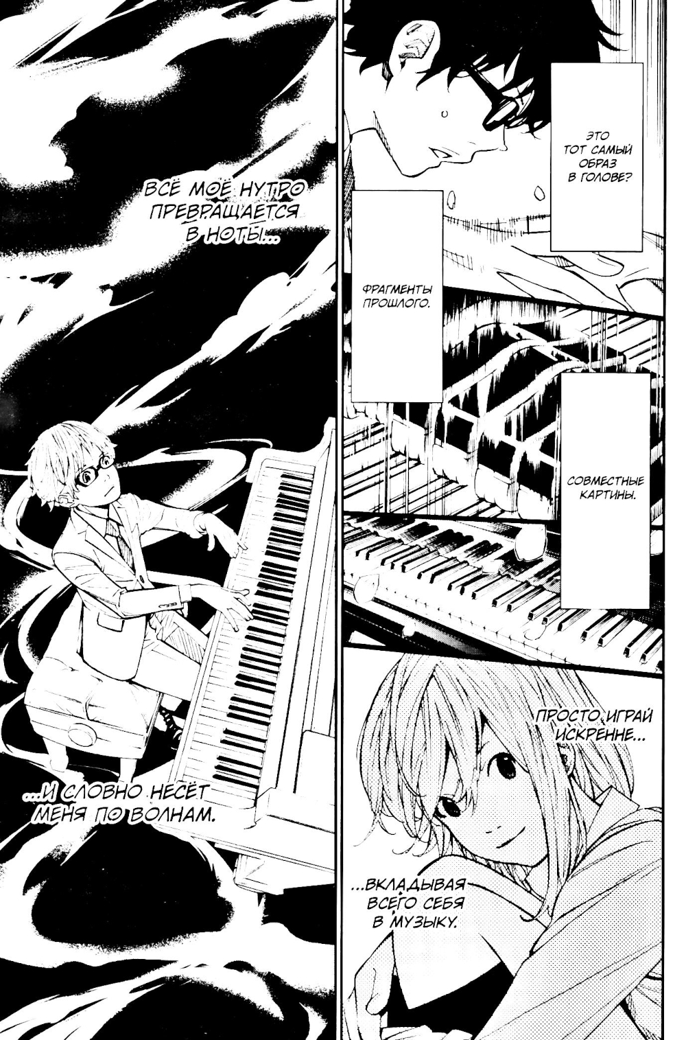 Каори Миядзоно и Косэй Арима приглашены на гала-концерт в концертном зале Това, однако, когда заветный день наконец настаёт, Каори не оказывается на месте. Пока организаторы решают, перенести ли её выступление на потом, критика в адрес Каори звучит всё громче и громче. Решив продемонстрировать всем, насколько девушка незаурядна, Косэй в одиночестве выходит на сцену. Первые ноты его «Мук любви» переполнены яростью, но когда Косэй вновь окунается в безмолвную пучину, он начинает вспоминать. Вспоминать мелодию, которую так любила его мать... И с его выступлением тут же происходят разительные перемены!| Издательство | ИД Истари Комикс |