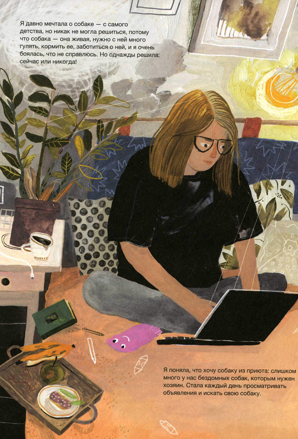 Меня зовут Лена Булай, я иллюстратор, и у меня есть любимая собака по имени Джо. Когда она появилась, я практически ничего не знала о собаках и наделала кучу ошибок. Но я много училась, читала, ходила на семинары и консультировалась у специалистов по поведению собак. Узнавала, как правильно общаться с собакой, слушать её и слышать, как строить с ней отношения, как заботиться о собаке и воспитывать, как подбирать правильное питание, гулять с ней и путешествовать. Мы с Джо проделали огромный путь, и из запуганного уличного щенка Джо превратилась в уверенную, довольную жизнью собаку. Я не идеальная хозяйка, а Джо не идеальная собака, но для меня она - лучшая, это точно. Надеюсь, эта книга поможет тебе понять, кто такие собаки, и найти среди них самую-самую, именно твою!| Издательство | Самокат |