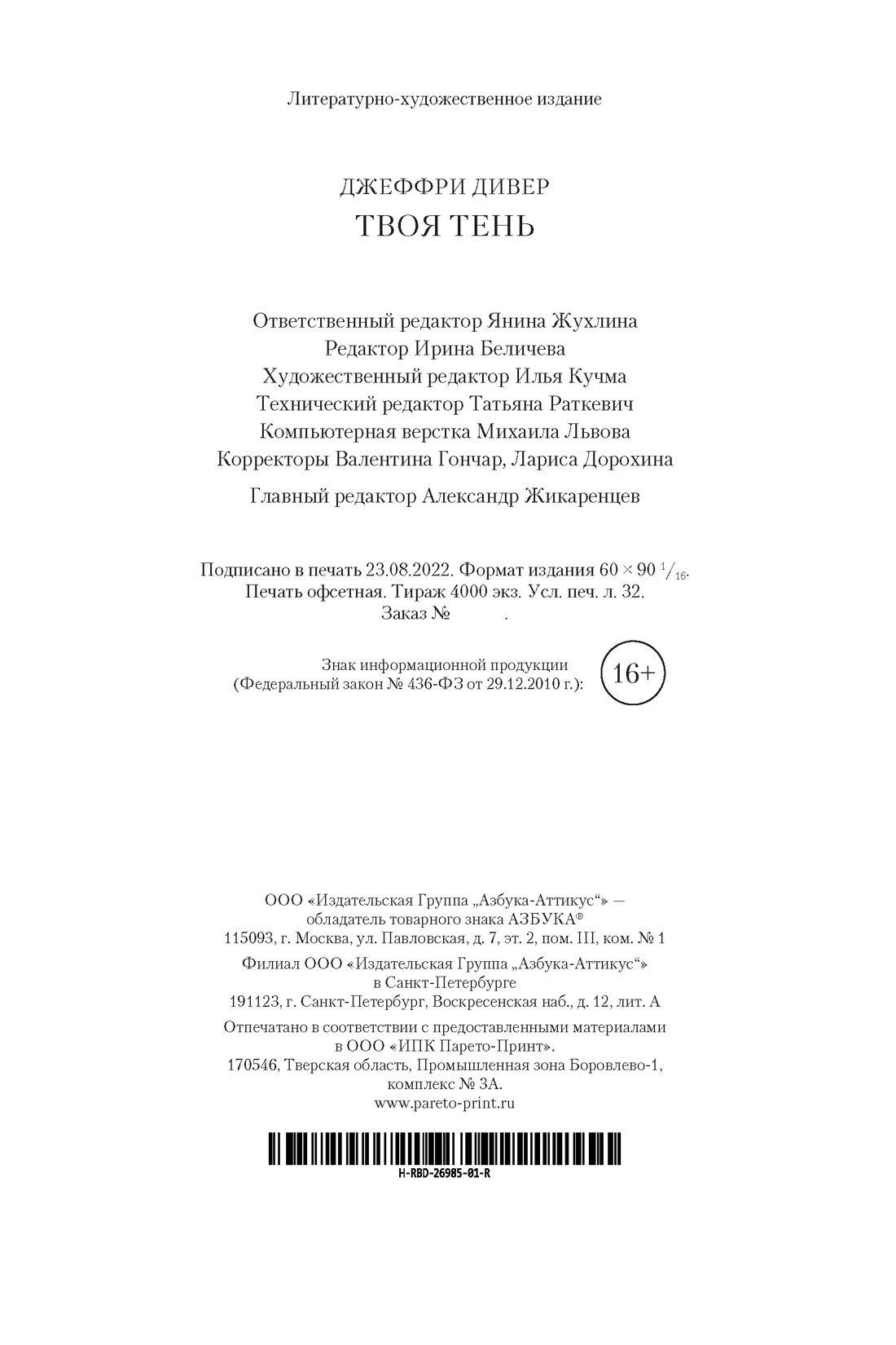 Музыкальная карьера певицы Кейли Таун набирает высоту благодаря огромной популярности хита «Твоя тень». Но у славы есть и другая сторона. Вступая в невинную переписку с одним из поклонников, Кейли не подозревает, чем это обернется. Тот считает, что ее песни содержат послания, обращенные лично к нему; он убежден, что «Твоя тень» была написана исключительно для него. Вскоре певице начинает казаться, что за ней кто-то следит. В концертном зале, где она репетирует, сначала происходит аварийная ситуация, жертвой которой едва не становится сама Кейли, а затем трагически погибает ее друг, участник группы. Случайно ли это? Впрочем, прямых улик против назойливого поклонника Кейли не найдено. Кроме того, расследующая это дело специальный агент Кэтрин Дэнс, эксперт по кинесике - языку тела, считает: если одержимый человек «верит во все свои выдумки, то кинесика тут бессильна и анализировать его поведение смысла нет». Тем временем события разворачиваются по непредсказуемому сценарию, смерть идет по пятам близких Кейли Таун, а потом и над ее головой нависает угроза... Впервые на русском!