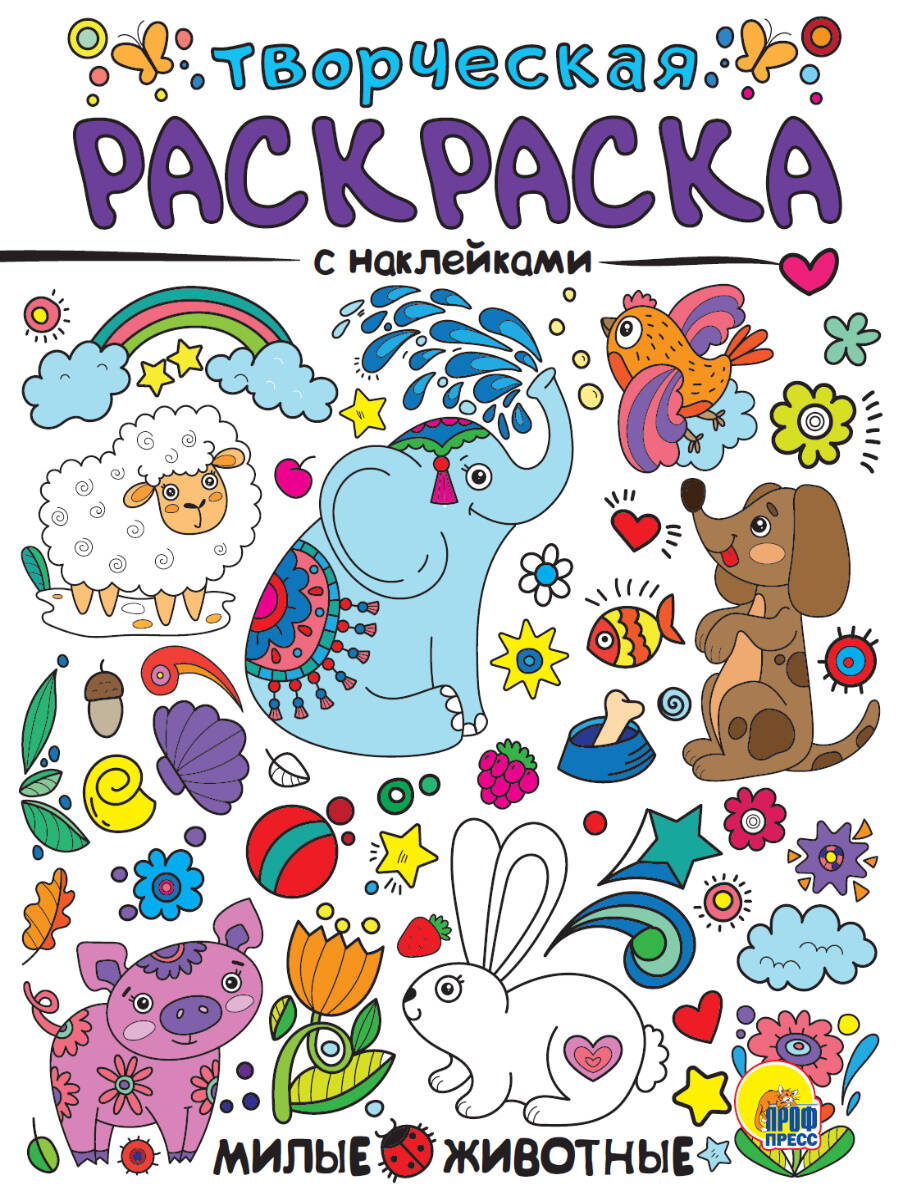 Аннотация: ТВОРЧЕСКАЯ РАСКРАСКА с наклейками. МИЛЫЕ ЖИВОТНЫЕ