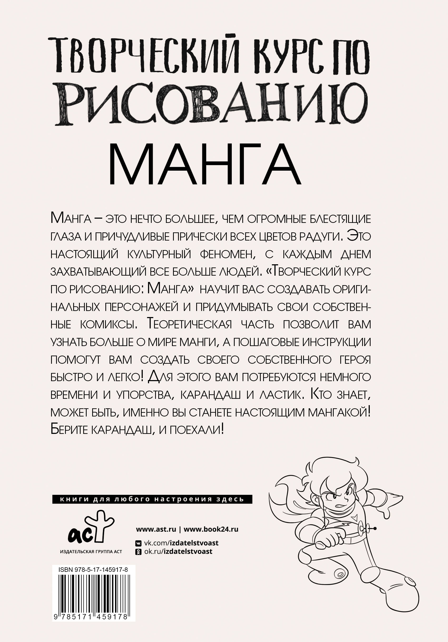 Манга - это нечто большее, чем огромные блестящие глаза и причудливые прически всех цветов радуги. Это настоящий культурный феномен, с каждым днем захватывающий все больше людей. "Творческий курс по рисованию: Манга" научит вас создавать оригинальных персонажей и придумывать свои собственные комиксы. Теоретическая часть позволит вам узнать больше о мире манги, а пошаговые инструкции помогут вам создать своего собственного героя быстро и легко! Для этого вам потребуются немного времени и упорства, карандаш и ластик. Кто знает, может быть, именно вы станете настоящим мангакой! Берите карандаш, и поехали!| Издательство | ИЗДАТЕЛЬСТВО "АСТ" |