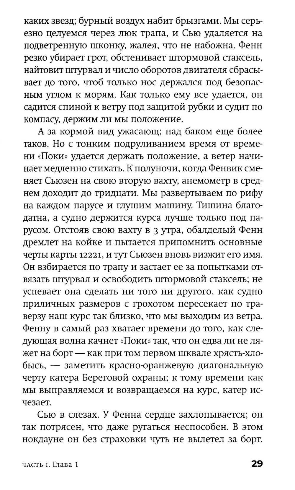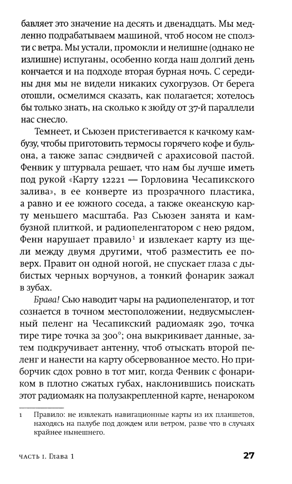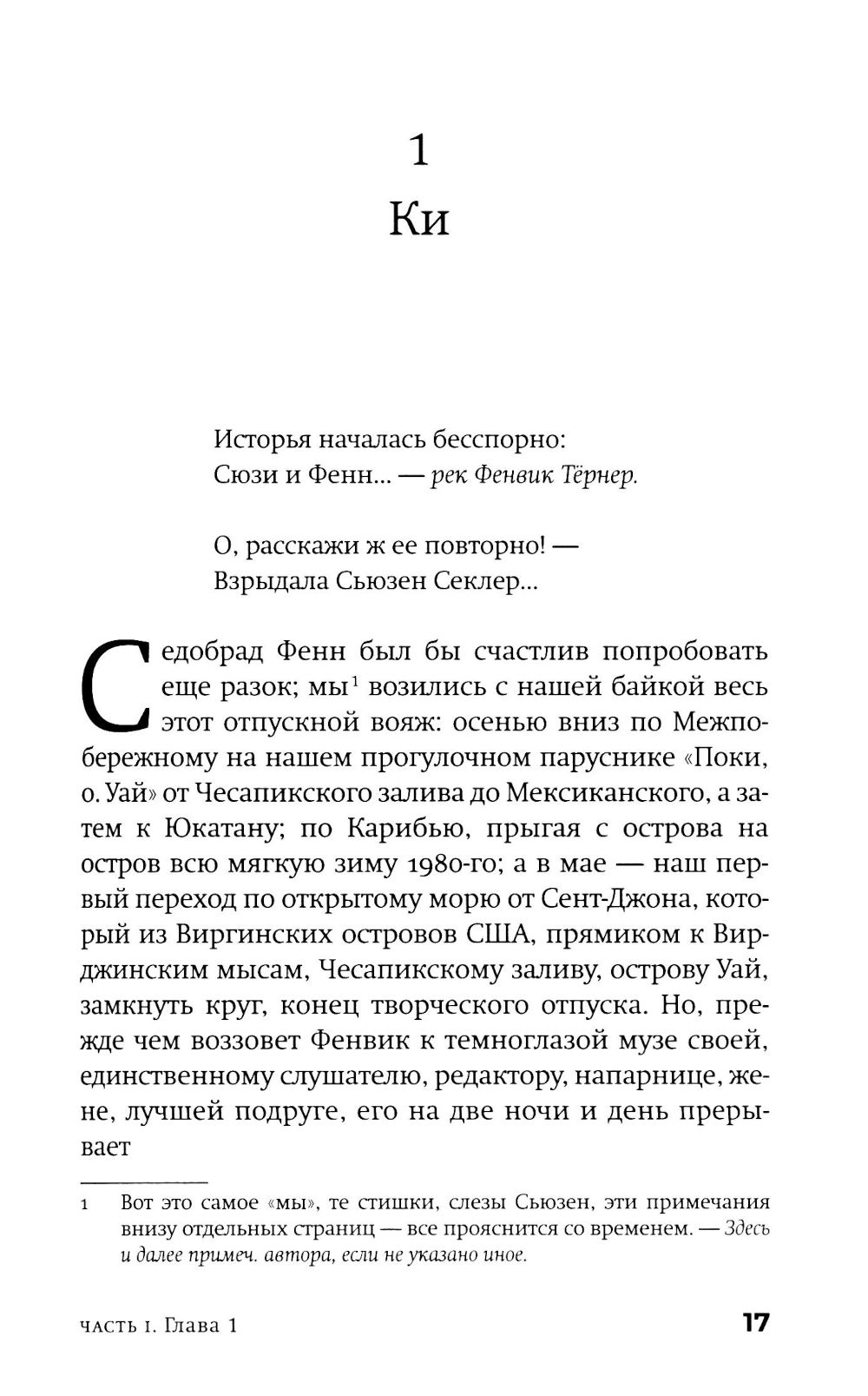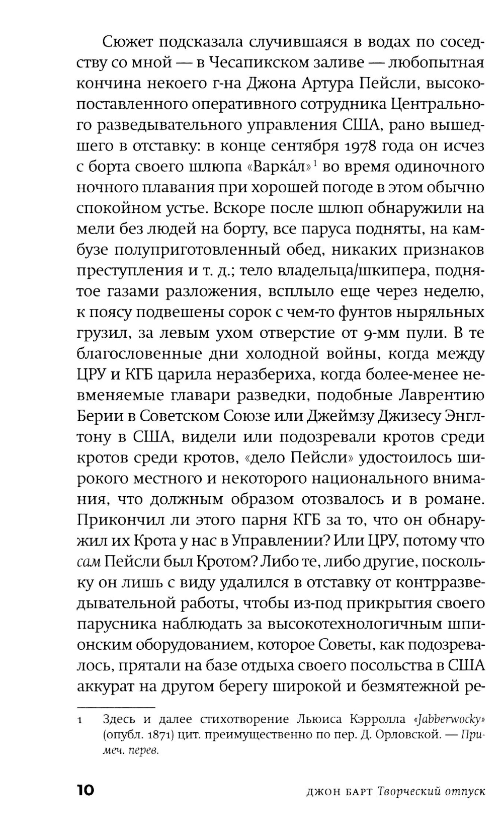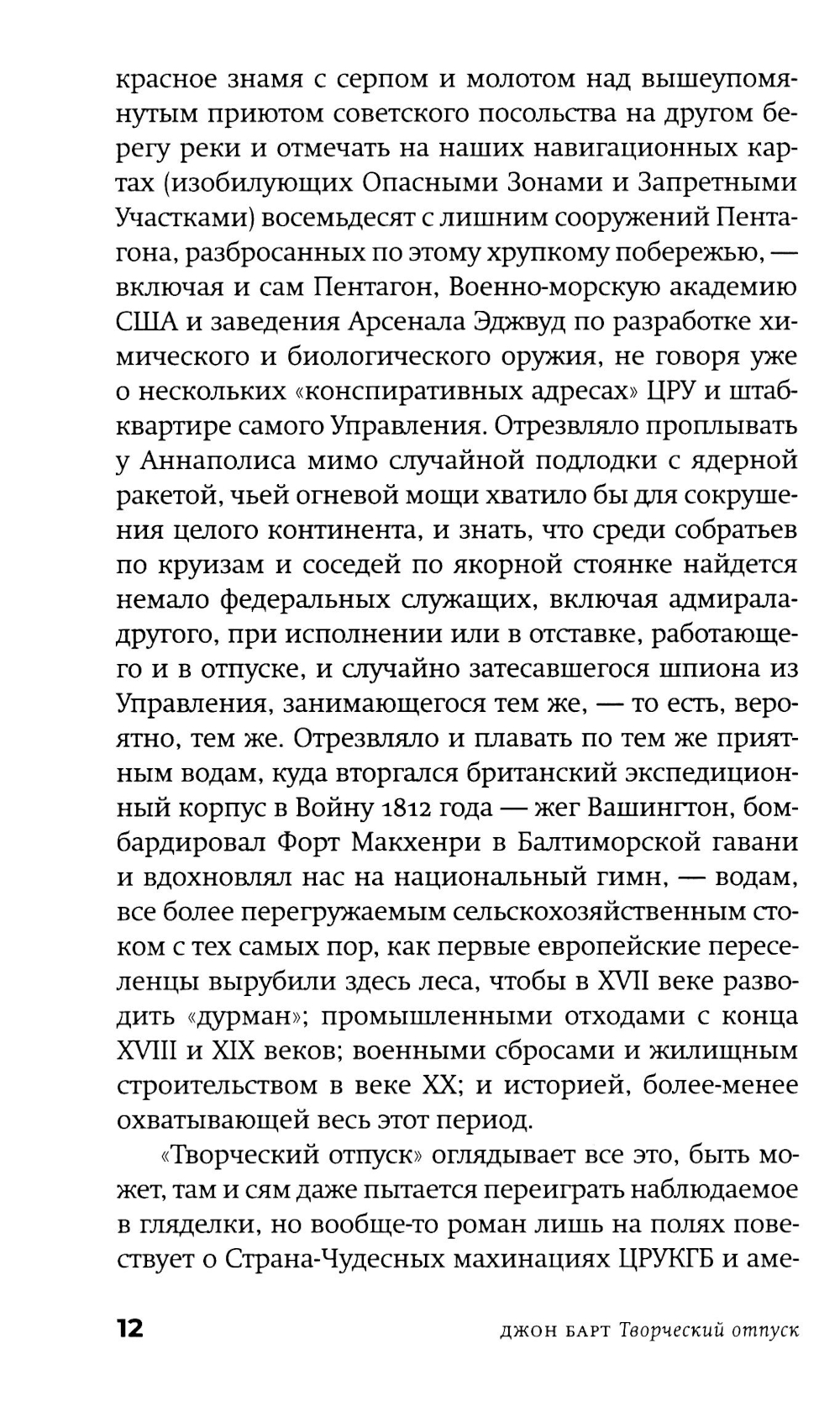 Американскому постмодернисту Джону Барту (р. 1930) в русскоязычном пространстве повезло больше многих, но это неточно. Изданы переводы трех его ранних романов и одного позднего, хотя два его классических шедевра фабулистики - «Торговец дурманом» и «Козлик Джайлз» - еще ждут своих переводчиков и издателей. Сам Барт уже давно и заслуженно легендарен: он член Американской академии искусств и словесности и у него под десяток американских и европейских призов и наград (из них три - по совокупности заслуг и за вклад в современную литературу). Бывший служащий ЦРУ Фенвик Скотт Ки Тернер - возможно, прямой потомок автора гимна США, написавший разоблачительную книгу о своих прежних работодателях, - и его молодая жена - преподавательница американской классической литературы Сьюзен Рейчел Аллан Секлер, полуеврейка-полуцыганка и, возможно, потомица Эдгара Аллана По, - возвращаются в Чесапикский залив из романтического плавания к Карибам. По дороге они, в общем, сочиняют роман (есть версия, что он стал следующим романом самого Джона Барта), сталкиваются с разнообразными морскими приключениями и выбираются из всевозможных передряг. Их ждут бури, морские чудовища, зловещие острова - а над всем нависает мрачная тень этих самых работодателей Фенвика... Сплетенный сразу из всех характерных и любимых деталей творческого почерка Джона Барта, роман скучать читателю точно не дает. Удивителен он тем, что, по сути, отнюдь не тот «умный» или «интеллектуальный» роман, чего вроде бы ждешь от авторов такого калибра и поколения, вроде Пинчона, Хоукса и Бартелми, с которыми русскоязычному читателю традиционно «трудно». Это, скорее, простая жанровая семейная сага плюс, конечно, любовный роман, но написан он с применением постмодернистского инструментария и всего, что обычно валяется на полу мастерской. А поскольку мастерская у нас - все-таки писательская, то и роман получился весьма филологический. И камерный - это, в общем, идеальная пьеса со спецэффектами: дуэт главных героев и небольшая вспомогательная труппа проживают у нас на глазах примерно две недели, ни разу не заставив читателя (подглядывающего зрителя) усомниться в том, что они реальны... Ну и, чтобы и дальше обходиться без спойлеров, следует сказать лишь еще об одной черте романа - о вписанности текста в территорию (вернее, акваторию: не карту, заметим, хотя иметь представление о складках местности не повредит). Тут уж сам Чесапикский залив - одно из тех мест, которые, конечно, можно читать как книгу. Плавание по этим местам будет вполне плавным, но извилистым.| Издательство | Фантом Пресс |