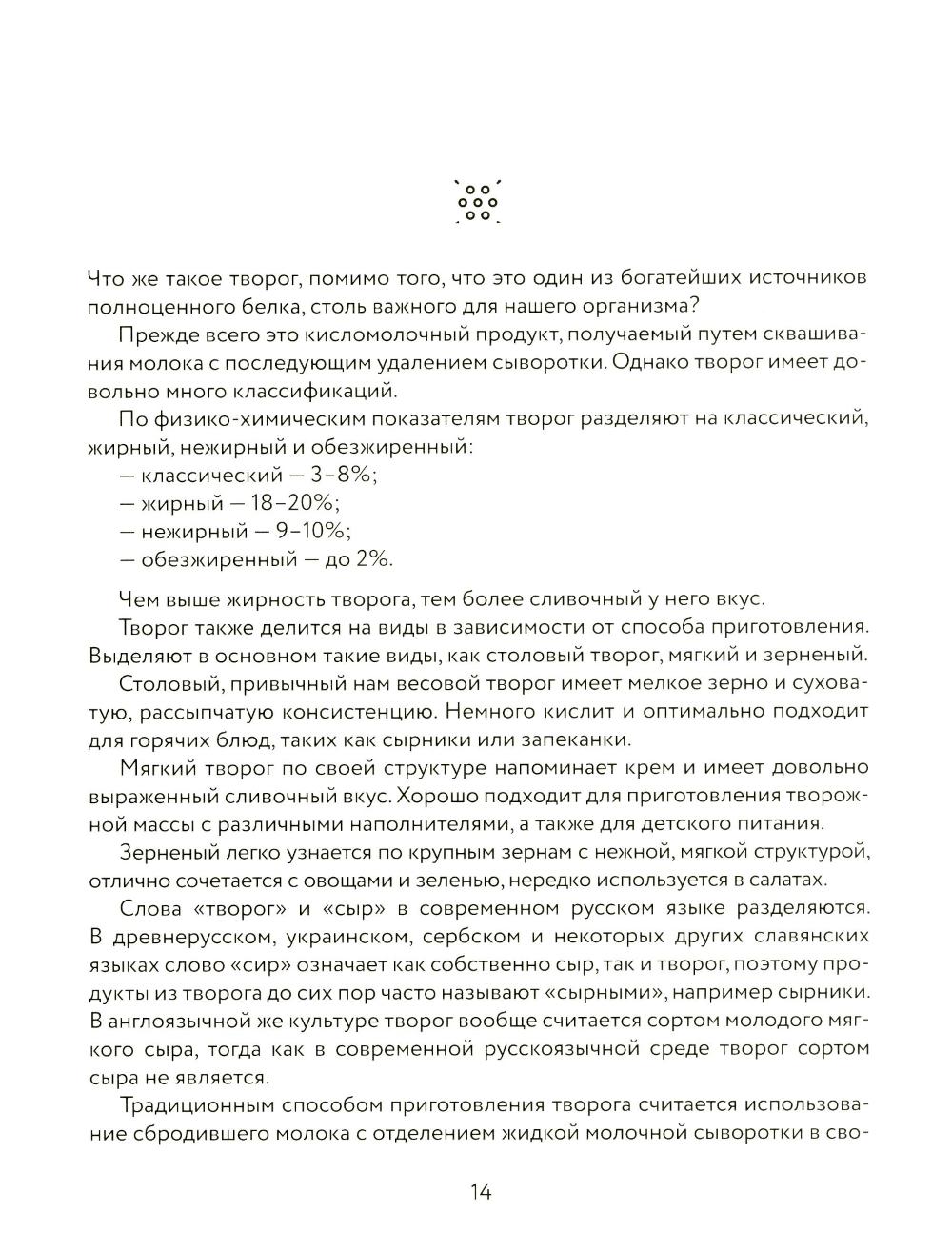 Что может быть вкуснее творожной запеканки на завтрак, под аромат которой вы просыпались в детстве? Или аппетитных сырников и блинчиков из домашнего творога, которые готовила для вас бабушка в деревне? Теперь все эти блюда, которые так и напоминают о беззаботном детстве, вы можете приготовить сейчас благодаря рецептам Екатерины Сардановской - автора бестселлеров «Тыквенная книга. 40 оригинальных рецептов для завтрака, обеда и ужина» и «Вкусно, как у мамы. Рецепты хороших девочек». В книге представлены подробные пошаговые рецепты ваших любимых творожных блюд, которые обязательно понравятся вашей семье, - вы научитесь готовить домашний творог, необычные тарты, риккотники, бейглы, ватрушки, кексы, пончики и даже торты, рулеты и чизкейки из творога, которые обязательно станут главными блюдами на любой праздник!| Издательство | Эксмо |