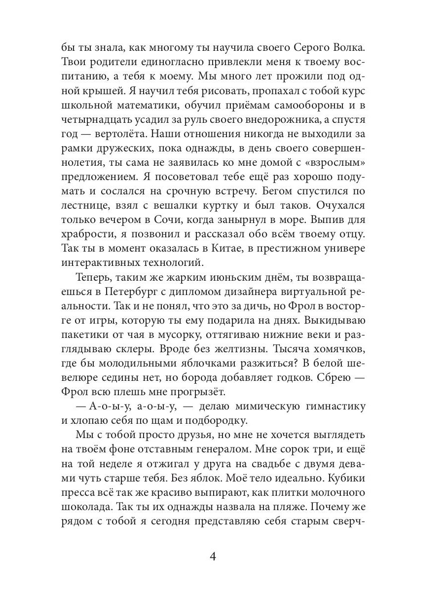 Долгие годы я был твоим другом и наставником, а ты всегда хотела большего. Рядом с тобой вижу себя старым сверчком из сказки про Пиноккио. Тебе двадцать один, мне - сорок пять. В белой шевелюре нет седины, но борода добавляет годков. Где разжиться молодильными яблочками? Не могу жить без тебя, моя взбалмошная принцесса! Я принял бесповоротно, что ты для меня одна.| Издательство | Т8 RUGRAM |