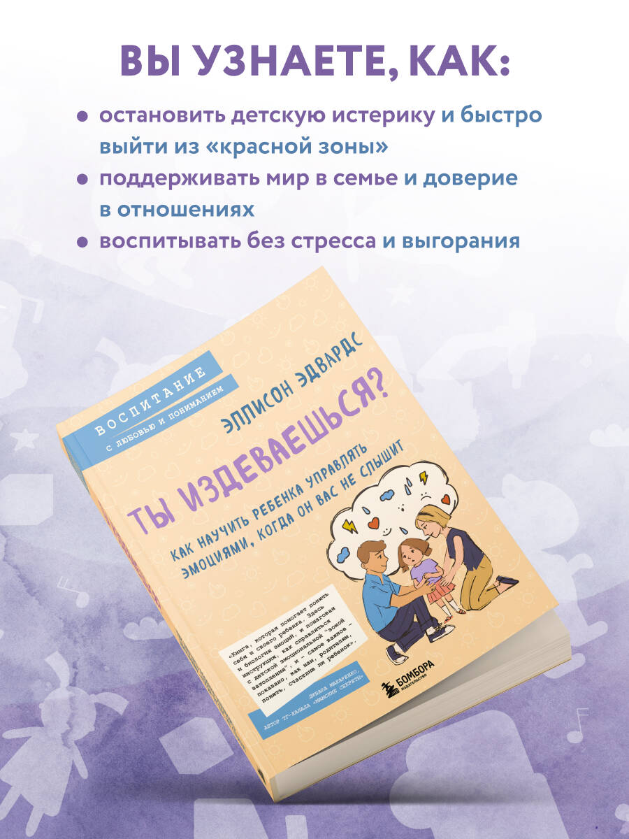 «Ты издеваешься? У меня уже нет сил!» Фраза, знакомая каждому родителю, когда ребенок закатывает истерики, постоянно спорит и не слышит слова «нет». В таком состоянии дети не способны быть рациональными и послушными. Им нужна ваша помощь! Опираясь на новейшие научные данные о работе детского мозга, психолог Эллисон Эдвардс объясняет, как помочь ребенку и подростку научиться управлять эмоциями. Вас ждут практические упражнения для развития эмоционального интеллекта у детей и взрослых, готовые фразы и сценарии, что делать в разгар детской истерики, а также рекомендации для родителей и педагогов по обустройству детской комнаты или школьного кабинета для улучшения эмоционального состояния ребенка. ВЫ УЗНАЕТЕ, КАК: - понять, что происходит в голове у ребенка во время эмоциональной бури; - сохранять спокойствие и не срываться, даже если кажется, что все вышло из-под контроля; - распознать влияние психологической травмы на эмоциональное состояние ребенка и поддержать его; - восстановить в семье мир, доверие и близость, заменив борьбу на взаимопонимание. Об авторе Эллисон Эдвардс - лицензированный психолог и игровой терапевт, специализирующийся на работе с детьми, подростками и их семьями. Разработала программу игровой терапии для детей из групп риска и иммигрантов в системе государственных школ. Является профессором в университете Вандербильта, где учит будущих вожатых работать с детьми.| Издательство | ООО "Издательство "Эксмо" |
