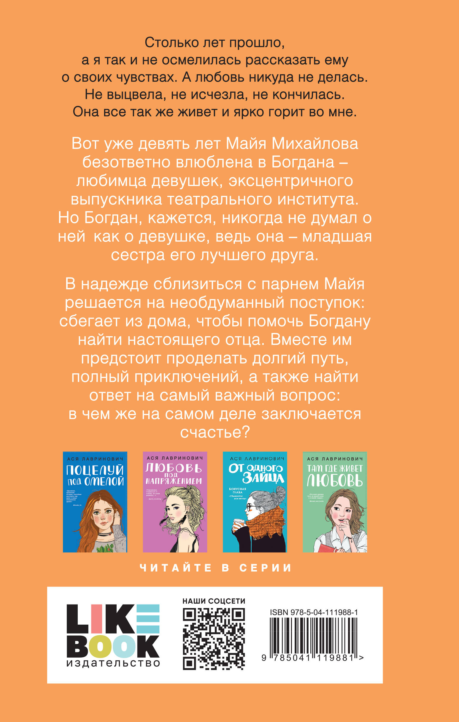 Ася Лавринович - молодой автор, получивший широкую известность благодаря публикации на Wattpad и Litnet. «Ты мое счастье» - это легкая, нежная история о взрослении, поиске счастья и, конечно же, о любви. Влюбиться в лучшего друга старшего брата - что может быть хуже? Разве что влюбиться безответно. Но героиня нового романа Аси Лавринович не готова сдаваться. И пусть ради внимания парня ей придется совершить непростое путешествие, полное неожиданных приключений, от любви своей она не откажется.| Издательство | ООО "Издательство "Эксмо" |