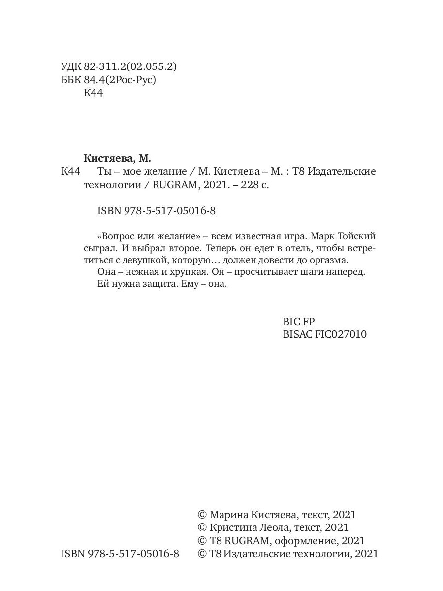 «Вопрос или желание» - всем известная игра. Марк Тойский сыграл. И выбрал второе. Теперь он едет в отель, чтобы встретиться с девушкой, ко-торую… должен довести до оргазма. Она - нежная и хрупкая. Он - просчитывает шаги наперед. Ей нужна защита. Ему - она.