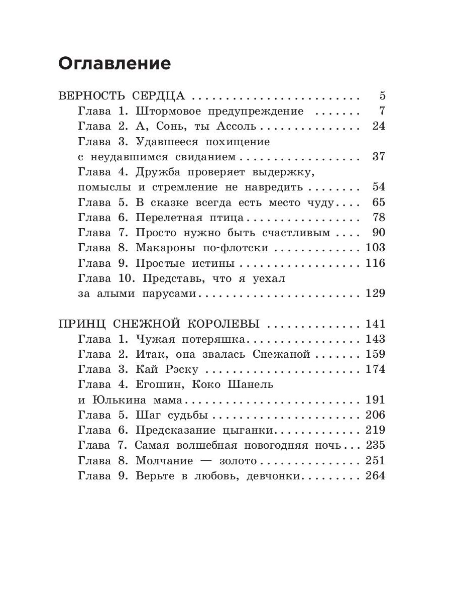 В сборнике две истории о первой любви! В доме, где живет Соня, появился новый сосед - широкоплечий парень с особенной выправкой. Им сразу заинтересовалась подруга Света. Она узнала телефонный номер Алекса и позвонила ему… с телефона Сони. Тогда-то всё и началось. Алекс приехал к деду на каникулы из нахимовского училища. Он познакомился здесь с двумя интересными девчонками. Будущий капитан дальних плаваний сделал свой выбор. Но пришла пора расставания. «Представь, что я уехал за алыми парусами», - сказал он своей Ассоль. Высокий кареглазый брюнет весь в белом метнул на Юльку быстрый взгляд, задержался на ее рыжих волосах и загадочно улыбнулся. Он помог сесть в машину красавице и уехал вместе с ней. Юлька осталась со своей влюбленностью в мимолетное видение и желанием найти этого принца. «Снежная королева и ее верный Кай покажут зрителям необыкновенные превращения, удивительные фокусы и сказочные чудеса», - гласила афиша. И Юлька решилась… Кая Рэску уже столько раз предавали, что он перестал верить людям. Но рыжая девчонка постучалась прямо в его раненое сердце.| Издательство | Т8 RUGRAM |