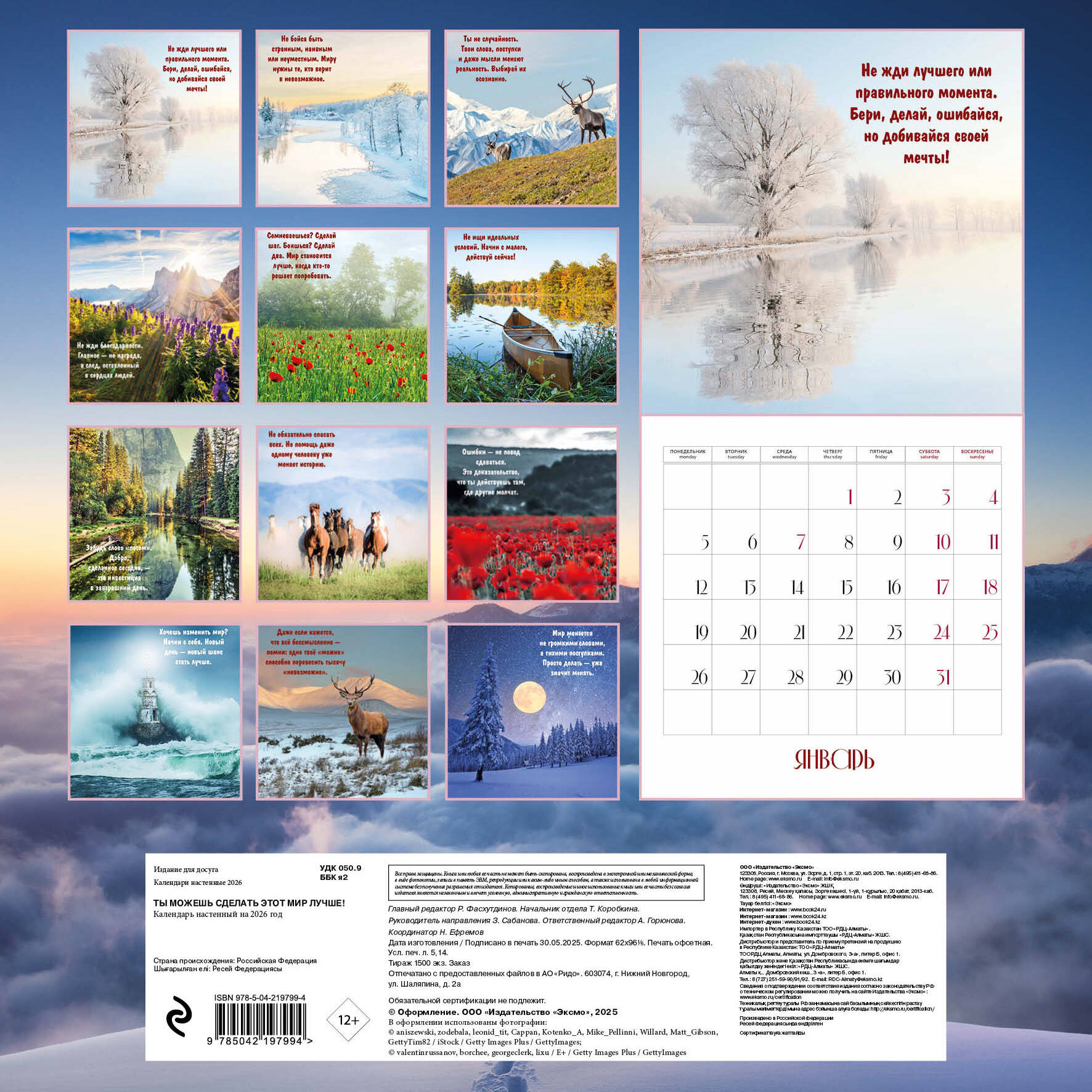Аннотация: Ты можешь сделать этот мир лучше! Календарь настенный на 2026 год (300х300)
