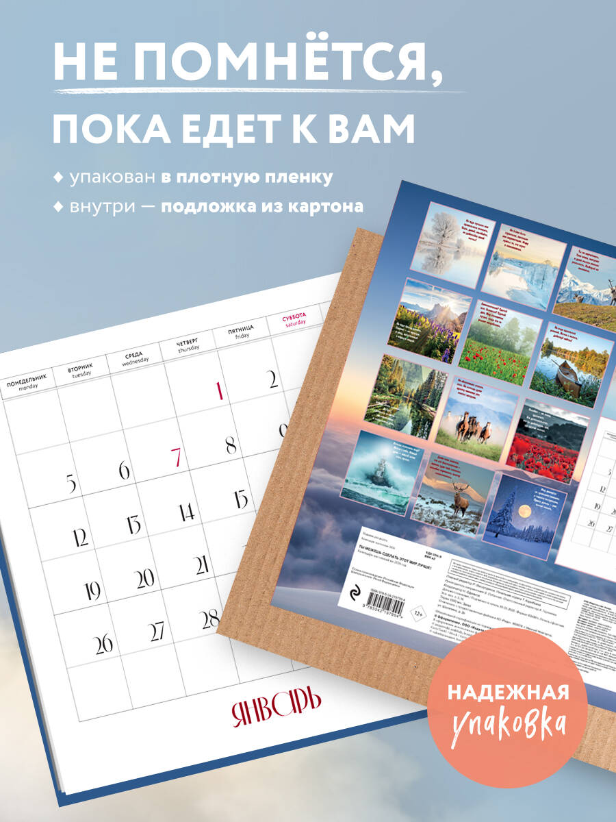 О календаре: В этом настенном перекидном календаре на 2026 год представлены красочные пейзажи, чтобы каждый день хотелось цвести. Начинай каждое утро с вдохновляющей цитаты, чтобы прожить день без проблем. Повесьте этот календарь в своем доме или на рабочем месте, и он достойно украсит любой интерьер. А календарный блок напомнит о важных событиях года. О серии: Наши настенные календари отличаются высоким качеством исполнения! Тщательно подобранные иллюстрации, напечатанные на глянцевой бумаге высочайшего качества, станут настоящим украшением дома, а в календарной сетке найдется место для ваших планов: большие клетки позволят делать записи и организовать свой год! В календаре также отмечены все государственные праздники. В серии настенных календарей издательства «ЭКСМО» каждый найдет тему по вкусу: великие художники, великолепные подборки с самыми знаменитыми произведениями искусства, легендарные кинематографические саги и игры, главные книжные авторы и бестселлеры, фотографии и иллюстрации любимых животных и многое-многое другое! Для кого: Высокое качество полиграфического исполнения прекрасно дополняет репродукции шедевров живописи, что непременно будет по достоинству оценено людьми с хорошим вкусом. Технические параметры: - Тип календаря - настенный перекидной. - Год - 2026. - Календарная сетка - с разбивкой по месяцам. - Вид скрепления - скрепка. - Ширина - 30 см. - Высота - 30 см. - Внутренний блок - мелованная бумага 115 г/м2. - Подложка - плотный гофрокартон для поддержания формы. - Индивидуальная упаковка в плотный целлофановый пакет.| Издательство | ООО "Издательство "Эксмо" |