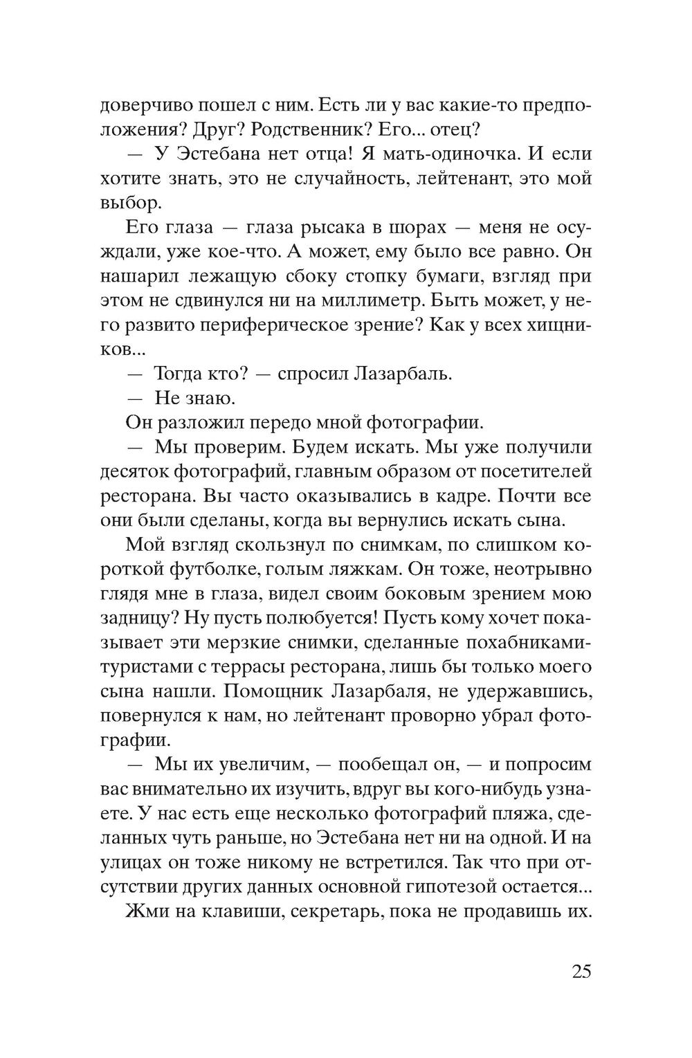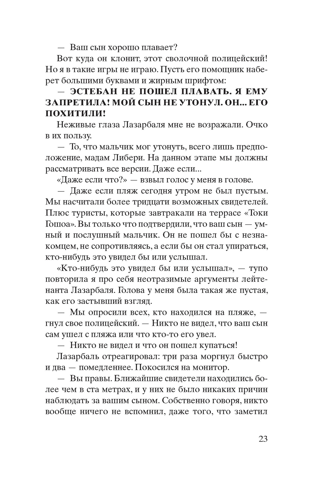 2010 год. Мадди работает врачом в курортном приморском городке, она счастлива со своим десятилетним сыном Эстебаном. Но однажды идиллическим летним утром в день его рождения Эстебан побежал в булочную, до которой каких-то 150 метров, и бесследно исчез... 2020 год. Мадди так и не свыклась с исчезновением Эстебана, она не верит, что сын умер, как заключила полиция. Мадди не сомневается, что ребенка похитили. Она давно уехала из приморского городка, пытается жить дальше, но однажды что-то заставляет ее вернуться на тот пляж - туда, где она в последний раз была с Эстебаном. И неожиданно она видит сына - та же внешность, тот же возраст, даже плавки те же. И время будто замирает для Мадди. Это и вправду Эстебан?.. А может, этот мальчик - его реинкарнация?.. С этой минуты Мадди овладевает навязчивая идея - она должна выяснить, кто этот мальчик, которого зовут Том. И она переезжает в Овернь, где Том живет с матерью. Чем больше Мадди шпионит за Томом, тем более невероятным кажется ей сходство Тома с Эстебаном. Одинаковые увлечения, одинаковые страхи... Как далеко она готова зайти, чтобы узнать правду? И спасти его - ведь она всем своим существом чувствует, что мальчику грозит опасность.| Издательство | Фантом Пресс |