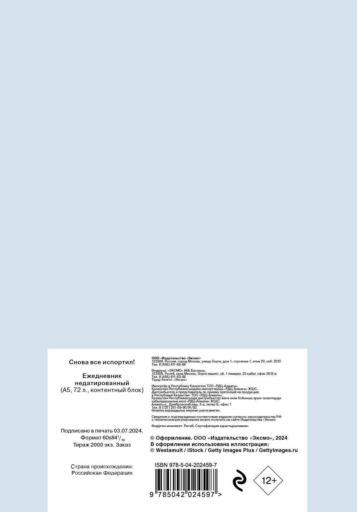 Аннотация: Ты снова все испортил! Ежедневник недатированный (А5, 72 л.)