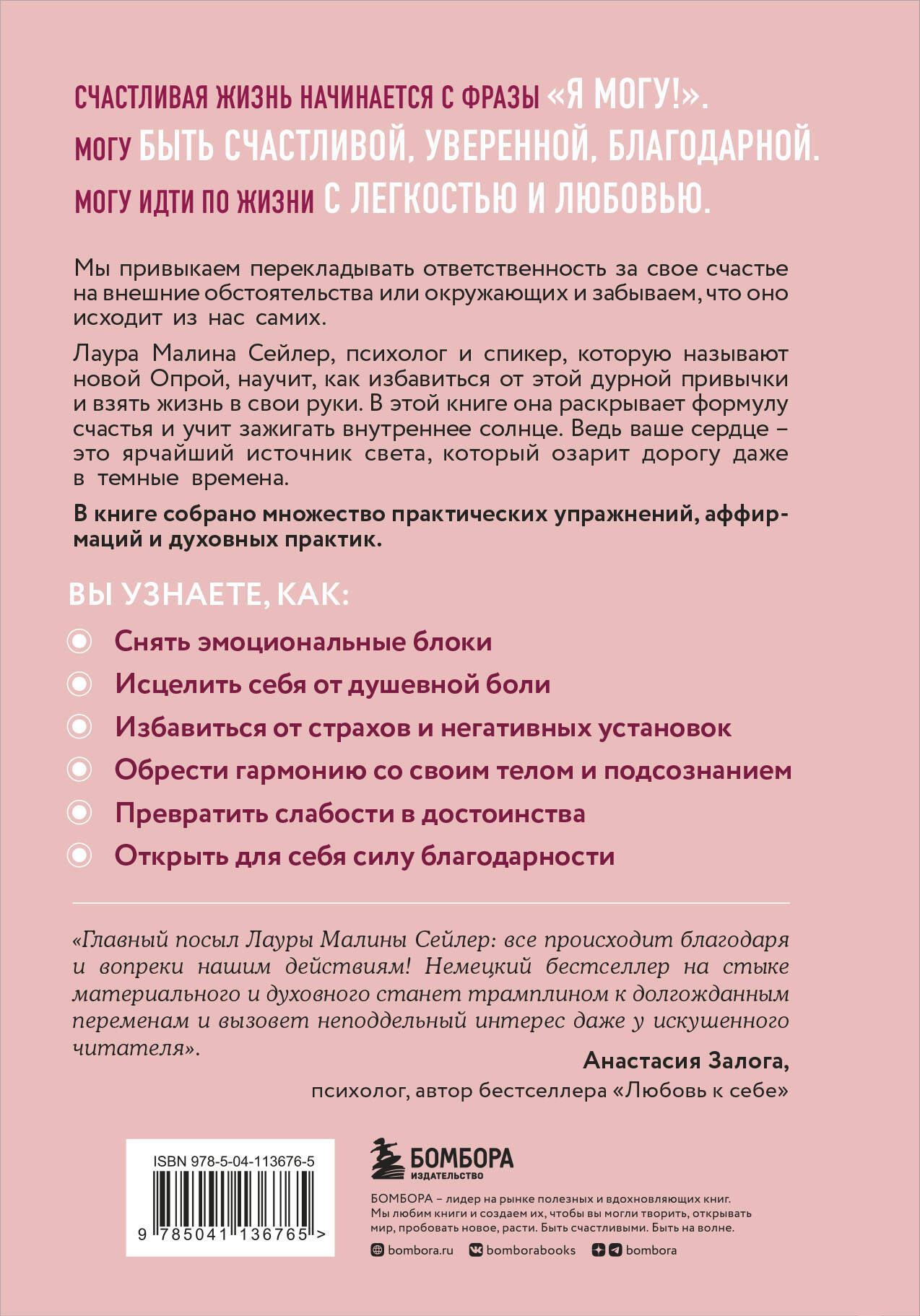 Счастливая жизнь начинается с фразы: «Я могу!» Могу быть счастливой, уверенной, благодарной. Могу идти по жизни с легкостью и любовью. Мы привыкаем перекладывать ответственность за свое счастье на внешние обстоятельства или окружающих и забываем, что оно исходит из нас самих. Лаура Малина Зайлер, психолог и спикер, которую называют новой Опрой, научит, как избавиться от этой дурной привычки и взять жизнь в свои руки. В этой книге она раскрывает формулу счастья и учит зажигать внутреннее солнце. Ведь ваше сердце - это ярчайший источник света, который озарит дорогу даже в темные времена. В книге собрано много практических упражнений и духовных практик. Она поможет вам: • Обрести гармонию со своим телом и подсознанием. • Снять эмоциональные блоки. • Исцелить себя от душевной боли. • Избавиться от страхов и негативных установок. • Превратить слабости в достоинства. • Открыть для себя силу благодарности. • И, наконец, впустить любовь в свою жизнь.| Издательство | ООО "Издательство "Эксмо" |