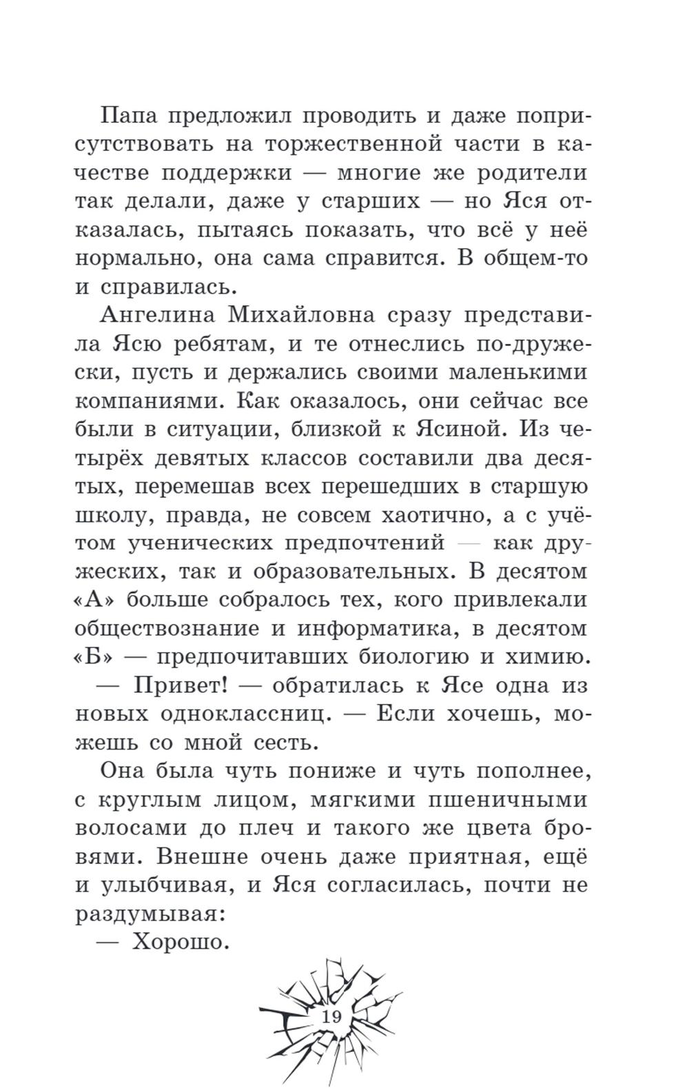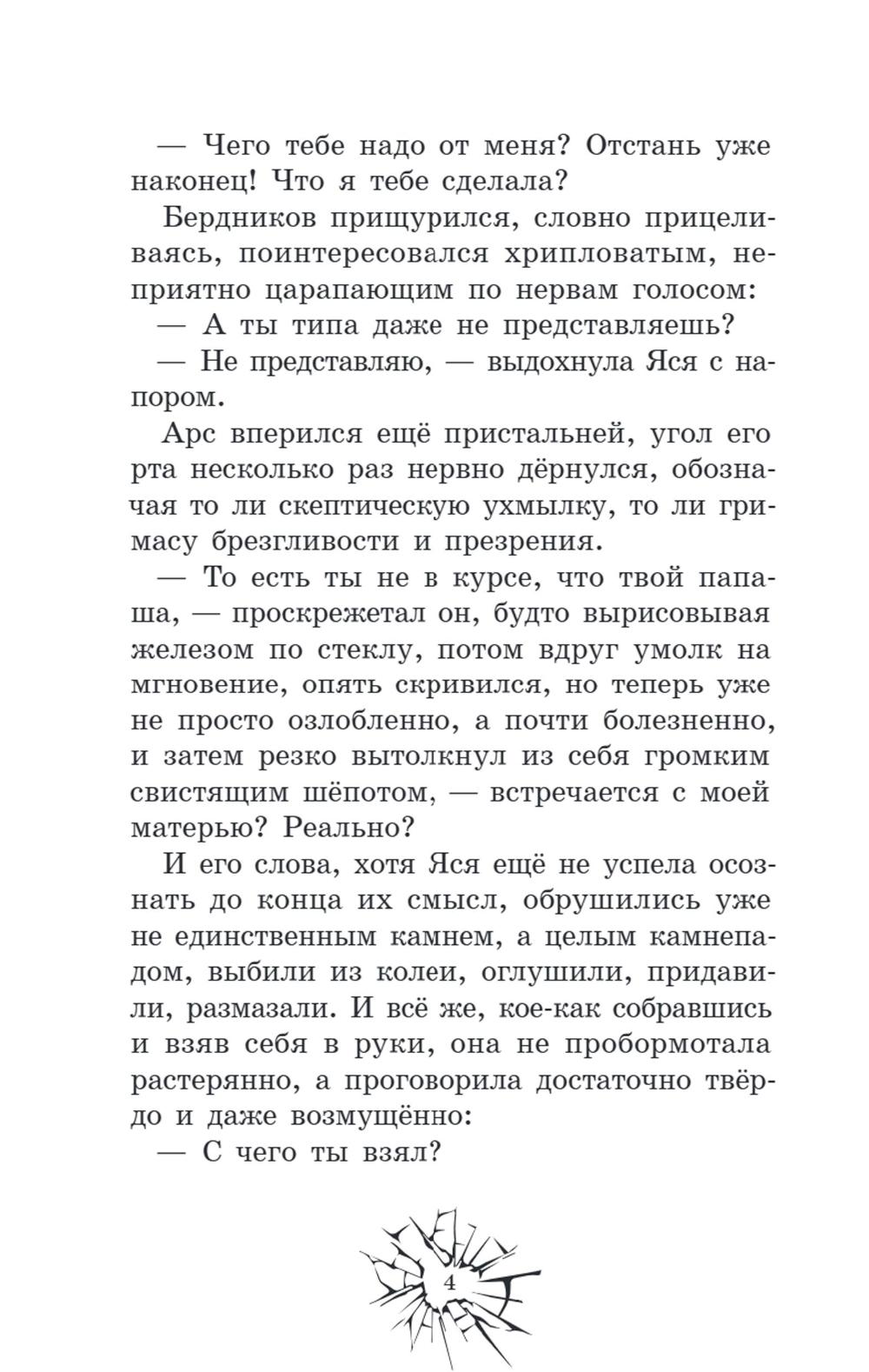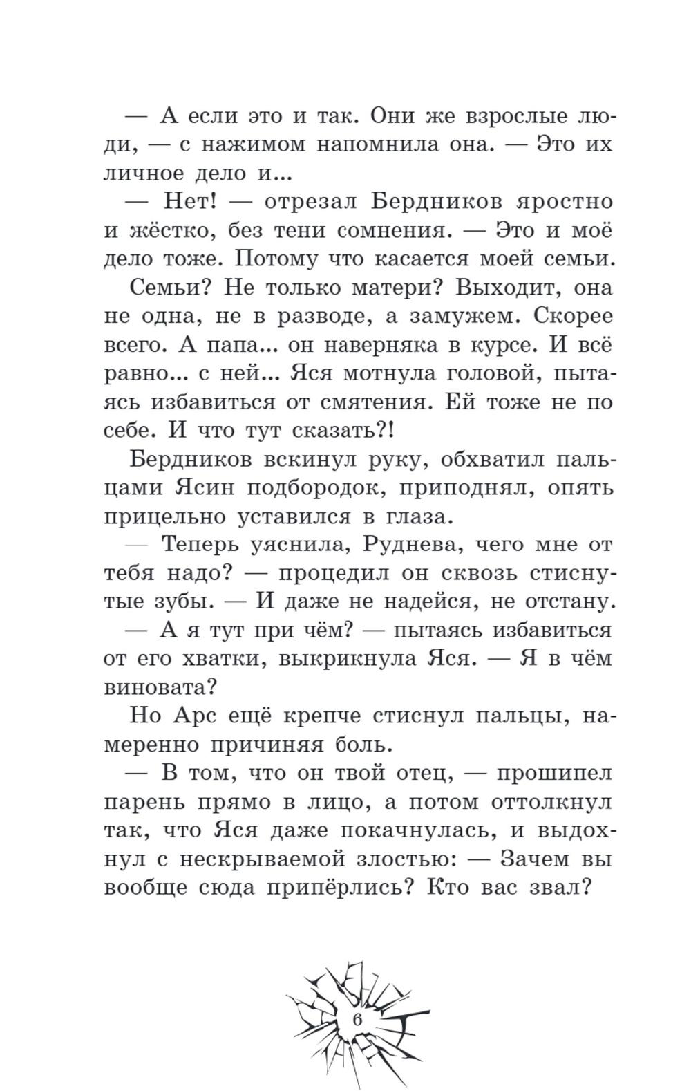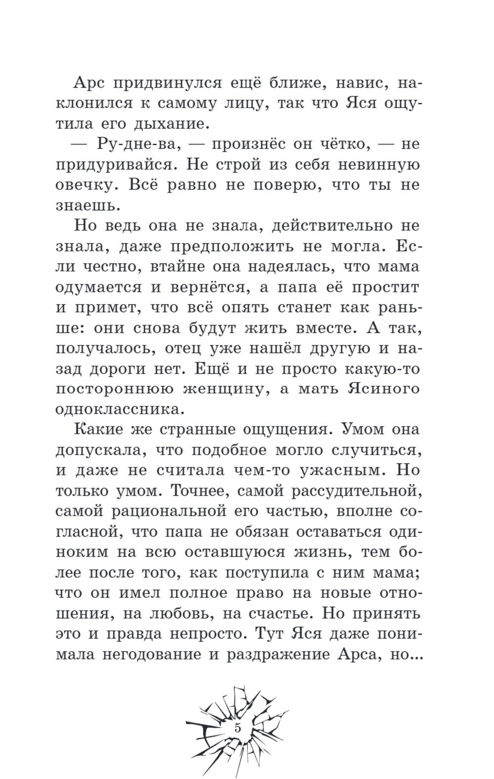 Раньше Арсений и Ярослава были просто одноклассниками, теперь стали непримиримыми врагами. Узнав, что у его мамы роман с отцом Яси, Арсений не собирается ждать, когда его семья окончательно разрушится. Он сделает всё, что посчитает нужным, лишь бы изменить ситуацию. Думая, что благородная цель оправдывает средства, Арс переходит моральные границы, решив, что, если сделает жизнь одноклассницы невыносимой, она с отцом уедет из города и проблема решится. Но умело организованная травля оборачивается против него самого. Любимая девушка начинает презирать, а семья всё равно распадается, потому что проблемы внутри неё возникли уже давно. Осознав свои ошибки, Арсений постарается всё исправить, пока не стало слишком поздно.| Издательство | Феникс |
