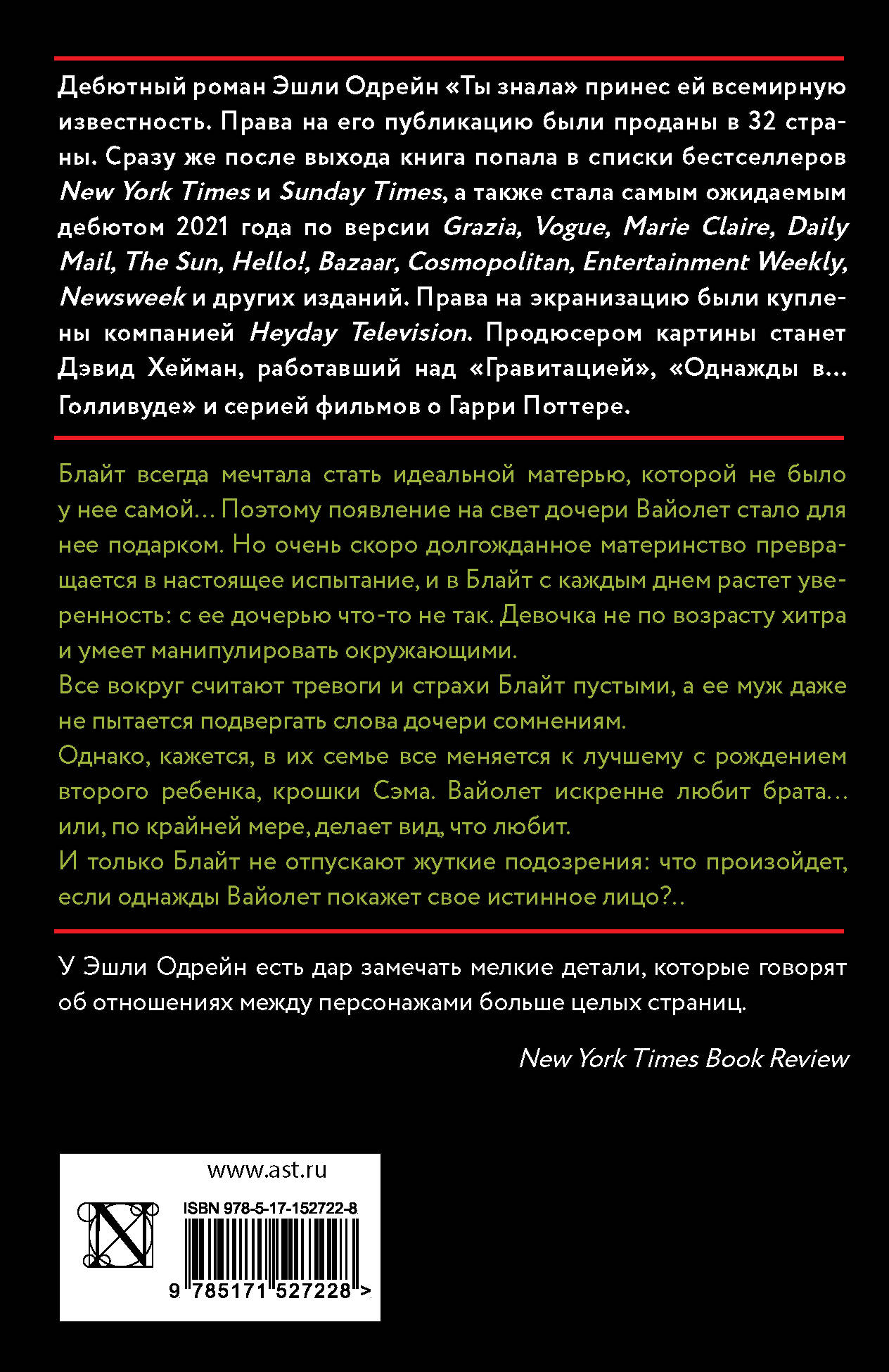 Международный бестселлер. Провокационная психологическая драма о материнстве и страхах, о которых не принято говорить вслух! Теперь в удобном карманном формате!| Издательство | ИЗДАТЕЛЬСТВО "АСТ" |