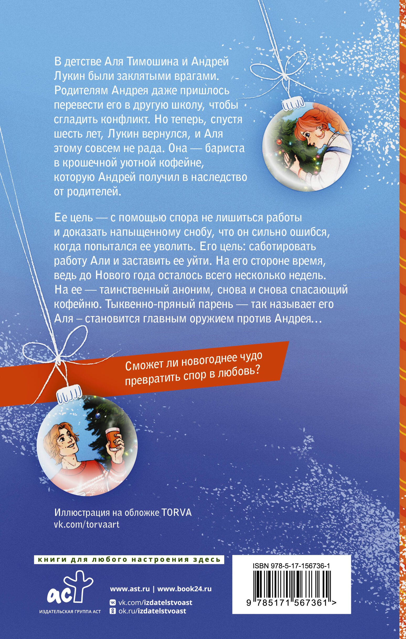 - Новинка серии новогодних романов «Зимняя романтика». Только уютные и согревающие истории. - Предновогодние будни маленькой кофейни и страсти, кипящие за ее мирным фасадом. - Роман со вкусом любимого латте. - Яркий троп «от ненависти до любви» - история на пике эмоций. Аля и Андрей терпеть не могут друг друга - в детстве их даже пришлось развести по разным школам. Казалось бы, прощай, заклятый враг, но прошло шесть лет, и эти двое снова встретились - на этот раз в кофейне, которую унаследовал Андрей. Аля устраивается туда бариста и намерена держаться за любимую работу до конца. Цель Андрея - выжить Алю любьой ценой, но каждую его попытку это сделать срывает загадочный незнакомец, которого Аля окрестила «тыквенно-пряным парнем». Кто этот аноним? И как он исхитрится примирить заклятых врагов? Все подробности - в романе Соль Валентайн.| Издательство | ИЗДАТЕЛЬСТВО "АСТ" |
