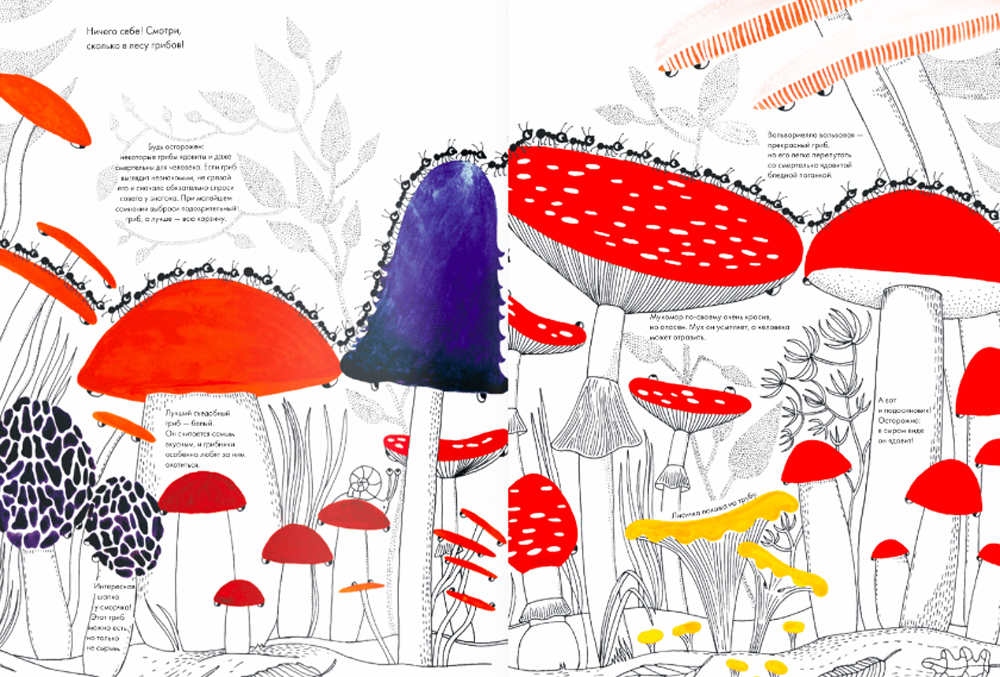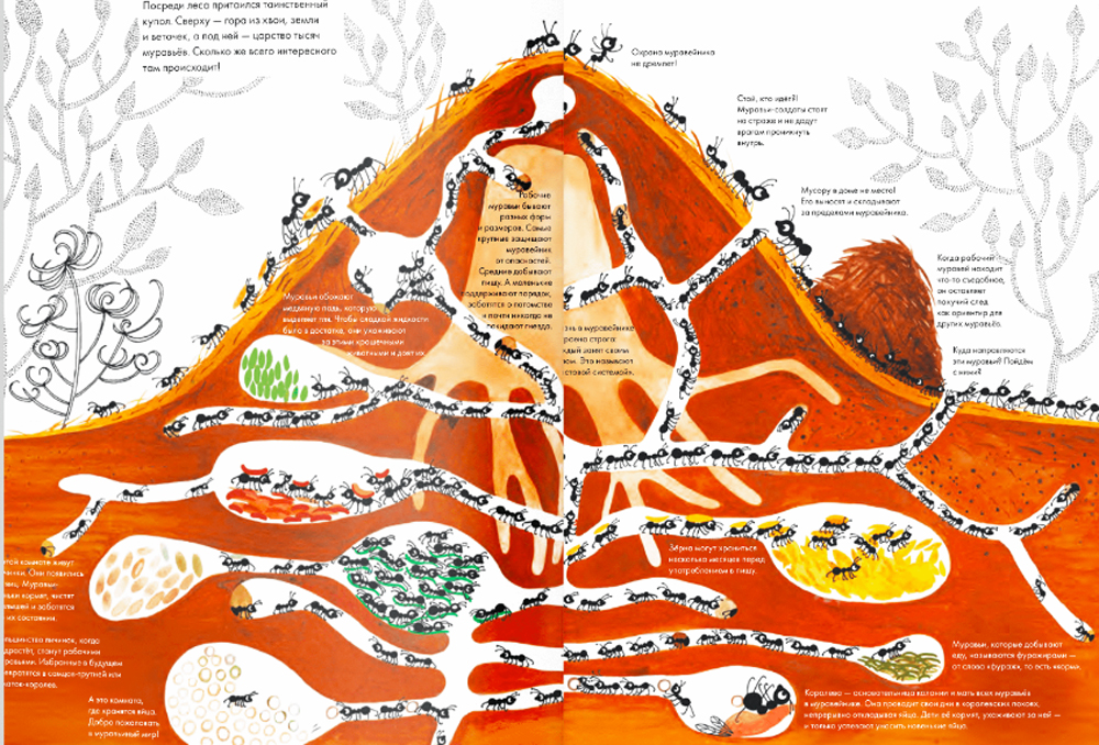 Отправляемся в путешествие с 1001 муравьем! Увидим их дом, познакомимся с их королевой и узнаем, как крошечные насекомые заботятся о своей колонии. А потом большой компанией прогуляемся по лесу, среди животных, растений и грибов, подмечая маленькие детали, которые незаметны с высоты человеческого роста. На каждом развороте художница спрятала муравья в красных носках - его нам придется найти и выручить из небольших неприятностей: то он отстал от друзей, то свалился с еловой ветки, то забрался на огромный цветок. Книга подготовлена к изданию в сотрудничестве с Московским зоопарком.| Издательство | Ад Маргинем Пресс |