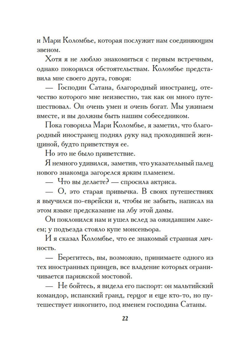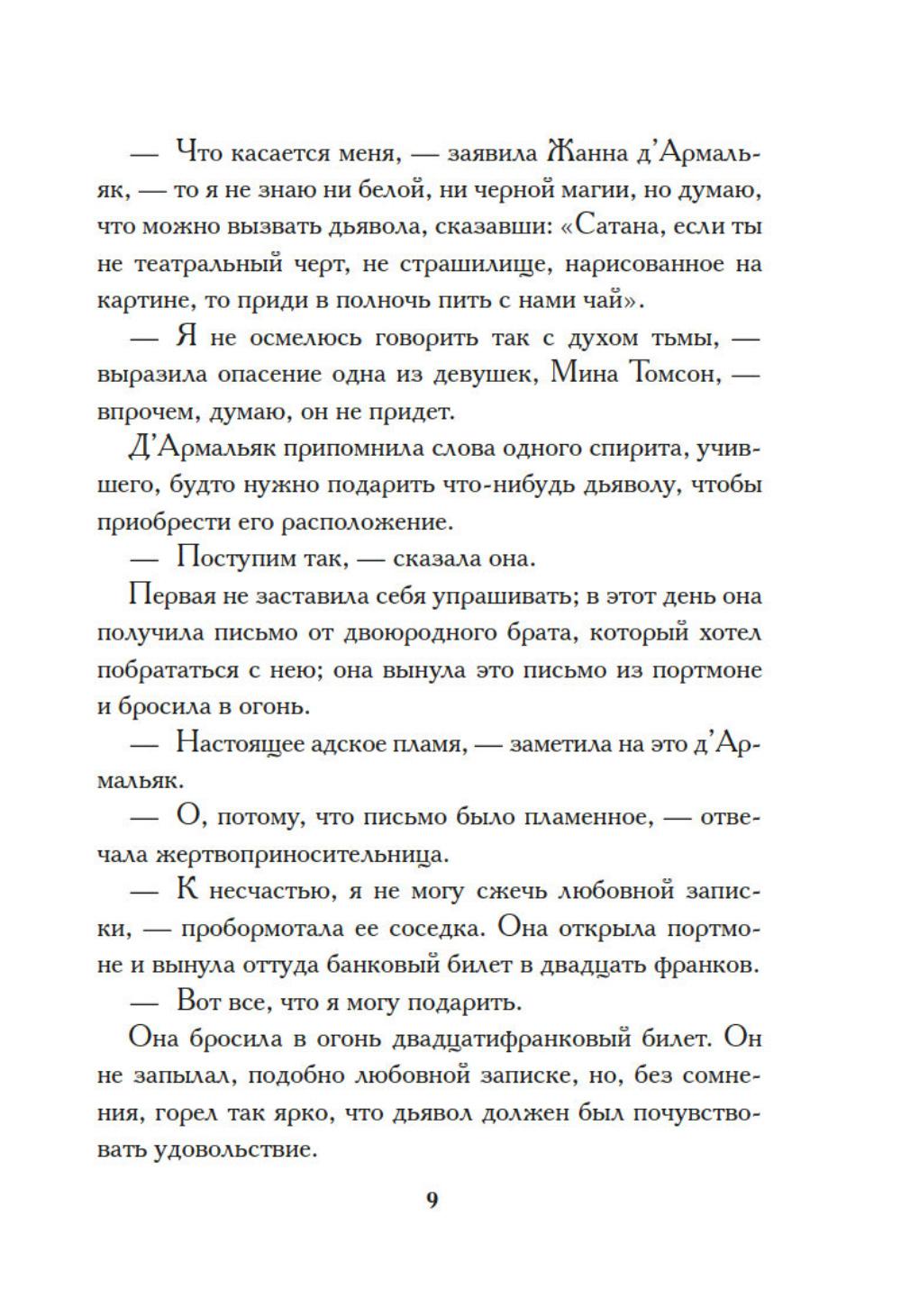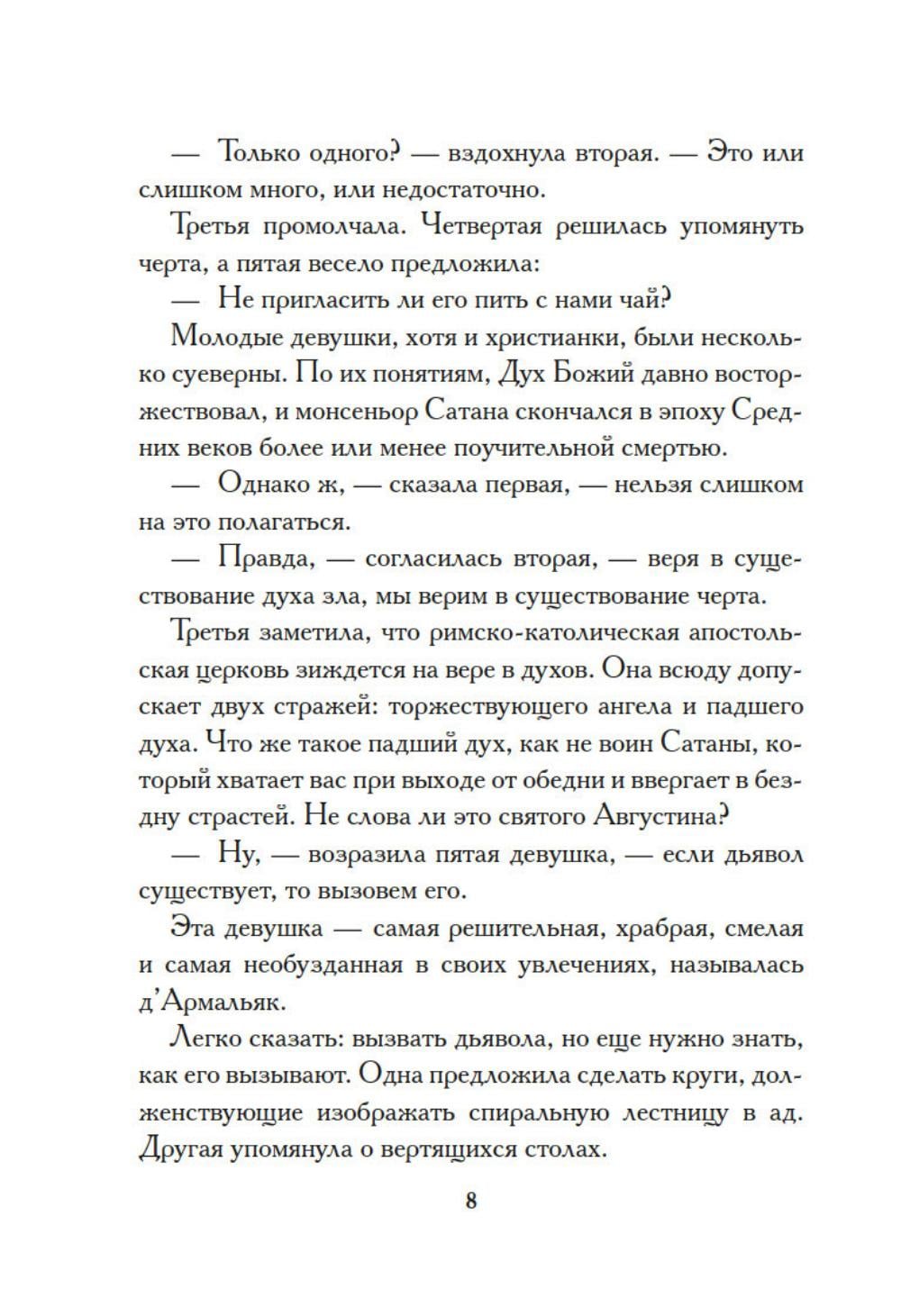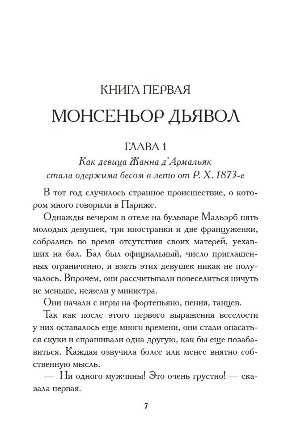 Поздним вечером, заскучав, пять сумасбродных светских девиц решили выпить чаю в обществе... самого Сатаны. Дьявол не явился на их ритуальный призыв, и тогда самая отчаянная из собравшихся, Жанна д'Армальяк, предложила нечистому... себя самое. Тут же слуга возвестил о прибытии маркиза Сатаны. Невероятный красавец, он выпил чашку чая в компании перепуганных девиц и удалился, пообещав Жанне, что каждую полночь станет являться к ней. Нетрудно догадаться, обещание свое маркиз выполнил, и даже перевыполнил, влюбившись во вздорную красавицу... Парижский полусвет живет и дышит страстями, а в такой атмосфере процветают только пороки - не потому ли черт появился именно в Париже конца XIX века? Правда, нравы прекрасных парижанок, которые он внимательно изучал на протяжении тысячи и одной ночи, изумили даже его... Созданный французским писателем Арсеном Гуссе, которого Эмиль Золя называл «одним из великих дубов романтического леса», этот роман пользовался в России огромной популярностью. Он был написан в 1875 году, а в Москве начал продаваться уже в 1877-м!| Издательство | Иностранка |