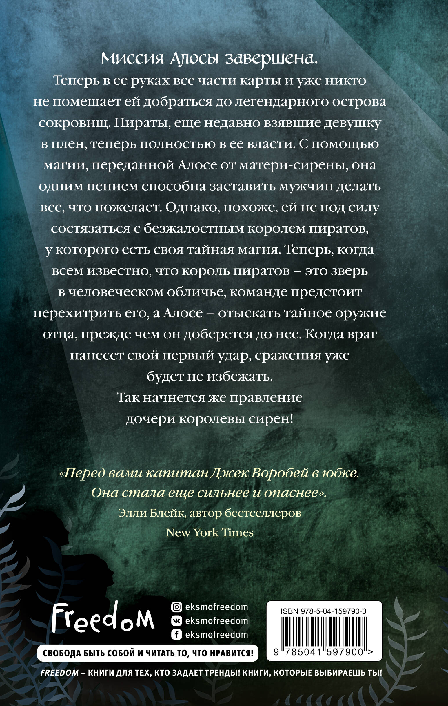 Триша Левенселлер - американская писательница, автор романа «Тени между нами», который стал бестселлером Amazon в разделе «Фэнтези YA». «Дочь королевы сирен» - вторая часть дебютного романа писательницы «Дочь короля пиратов», получившего почти 4 тыс. отзывов на Amazon и подаривший ей всемирную известность. Дилогия вышла в пяти странах! Сильная, уверенная и безжалостная Алоса возвращается в открытое море, чтобы отправиться в новое захватывающее приключение. Все готово к тому, чтобы отправиться к легендарному острову сокровищ, ведь на руках у Алосы все части карты. Но никто еще не догадывается, с какими испытаниями всем предстоит столкнуться и от кого придется бежать. Все героини Триши дерзкие, отважные и беспринципные. Их не всегда можно назвать положительными, но это и делает их такими интересными. Они в одиночку способны противостоять врагам, защитить себя и выиграть сражение. «Триша Левенселлер вновь приглашает вас в увлекательное романтическое и опасное путешествие по морским волнам». - Amazon.com Более 40 тыс. оценок, 100 тыс. человек добавили книгу в раздел «Хочу прочитать» на портале Goodreads.com. Миссия Алосы завершена. Теперь в ее руках все части карты, и уже никто не помешает ей добраться до легендарного острова сокровищ. Пираты, еще недавно взявшие девушку в плен, теперь полностью в ее власти. С помощью магии, переданной Алосе от матери-сирены, она одним пением способна заставить мужчин делать всё, что пожелает. Однако, похоже, ей не под силу состязаться с безжалостным королем пиратов, у которого есть своя тайная магия. Теперь, когда всем известно, что король пиратов - это зверь в человеческом обличье, способный предать родную дочь и добраться до острова Канта любой ценой, команде предстоит перехитрить его, а Алосе - отыскать тайное оружие отца прежде, чем он доберется до нее. Когда враг нанесет свой первый удар, сражения уже будет не избежать. Так начнется же правление дочери королевы сирен!