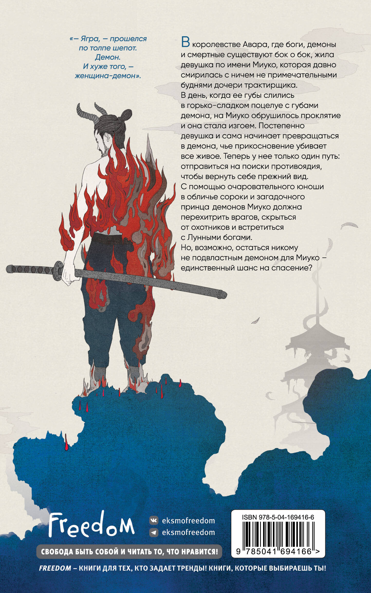 Новое азиатское магическое фэнтези, основанное на средневековой японской мифологии от автора бестселлеров New York Times Трейси Чи! Японский колорит, фольклор, древнее проклятие, боги, духи и демоны. В центре сюжета - девушка, открывшая в себе несокрушимую силу. В королевстве Авара, где боги, демоны и смертные существуют бок о бок, жила девушка по имени Миуко, которая давно смирилась с ничем не примечательными буднями дочери трактирщика. В день, когда ее губы слились в горько-сладком поцелуе с демоном, на Миуко обрушилось проклятие и она стала изгоем. Постепенно девушка и сама начинает превращаться в демона, чье прикосновение убивает все живое. Теперь у нее только один путь: отправиться на поиски противоядия, чтобы вернуть себе прежний вид. С помощью очаровательного юноши в обличье сороки и загадочного принца демонов Миуко должна перехитрить врагов, скрыться от охотников и встретиться с Лунными богами. Но, возможно, остаться никому не подвластным демоном для Миуко единственный шанс на спасение? Для всех поклонников азиатского фэнтези. Окунитесь в атмосферу Древней Японии с ее невероятными пейзажами, одеяниями, традициями и интригами.| Издательство | ООО "Издательство "Эксмо" |