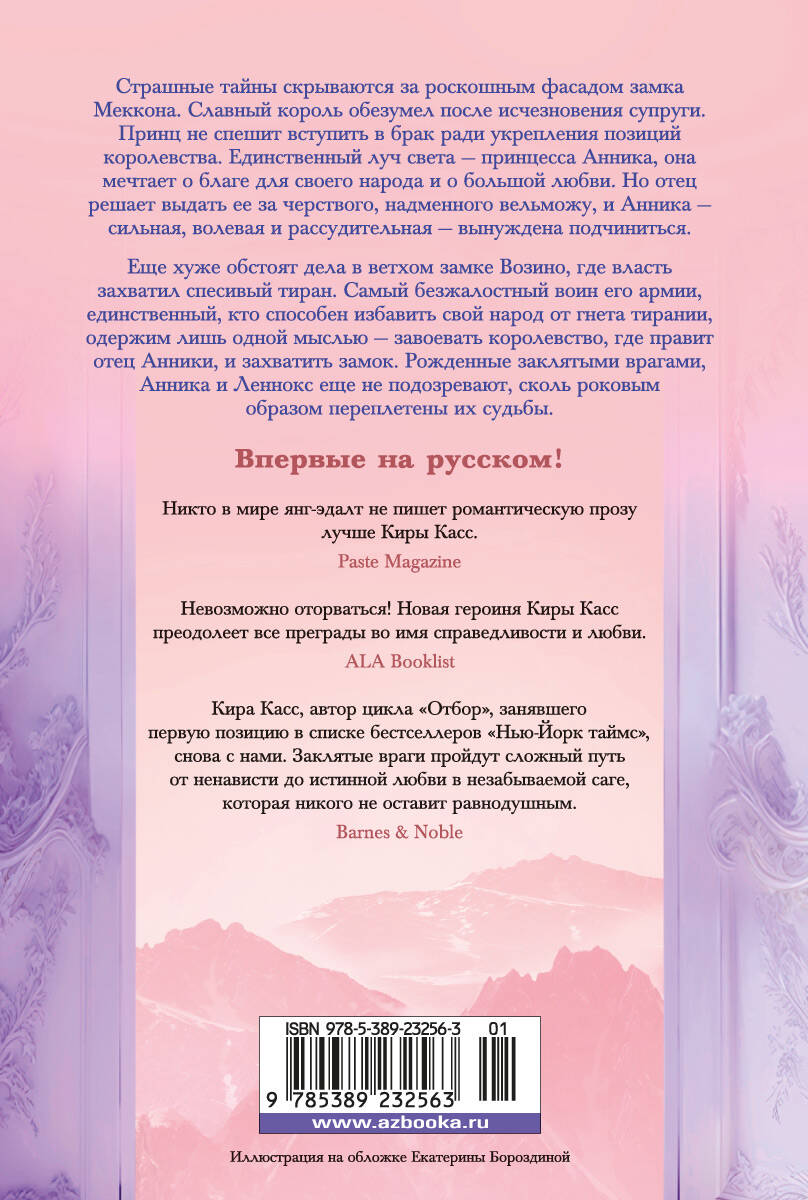 Страшные тайны скрываются за роскошным фасадом замка Меккона. Славный король обезумел после исчезновения супруги. Принц не спешит вступить в брак ради укрепления позиций королевства. Единственный луч света - принцесса Анника, она мечтает о благе для своего народа… и о большой любви. Но отец решает выдать ее за черствого, надменного вельможу, и Анника - сильная, волевая и рассудительная - вынуждена подчиниться. Еще хуже обстоят дела в ветхом замке Возино, где власть захватил спесивый тиран. Самый безжалостный воин его армии, единственный, кто способен избавить свой народ от гнета тирании, одержим лишь одной мыслью - завоевать королевство, где правит отец Анники, и захватить замок. Рожденные заклятыми врагами, Анника и Леннокс еще не подозревают, сколь роковым образом переплетены их судьбы. Впервые на русском!| Издательство | Азбука-Аттикус Издат.группа ООО |
