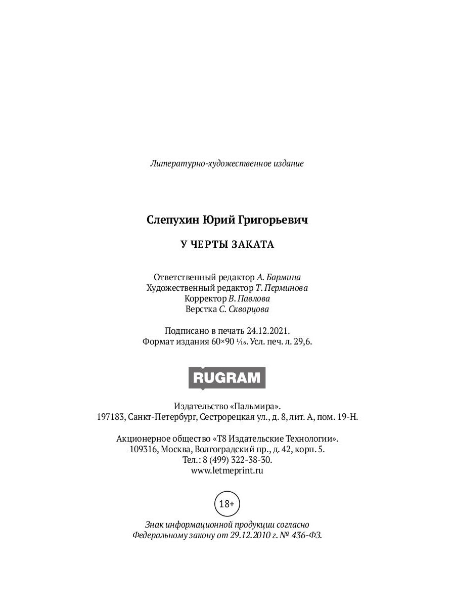 Аннотация: У черты заката: роман