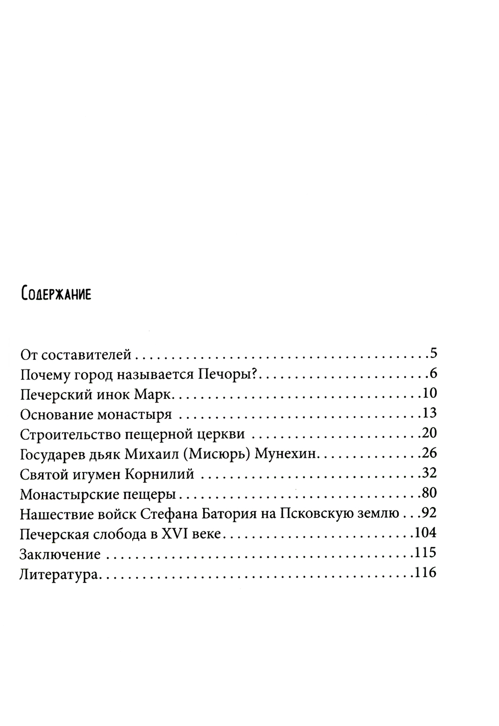 В книге рассказывается об истории основания г. Печоры, тесно связанной с историей Псково-Печерского монастыря. Город появился у древних крепостных стен обители, поэтому в книге изложена история ее возникновения - с использованием летописных источников. В книге раскрывается этимология названия города, отражена военные события и сражения, даны бытовые и военные зарисовки жизни Стрелецкой слободы в XV-XVI веках.| Издательство | Свято-Успенский Псково-Печерский монастырь |